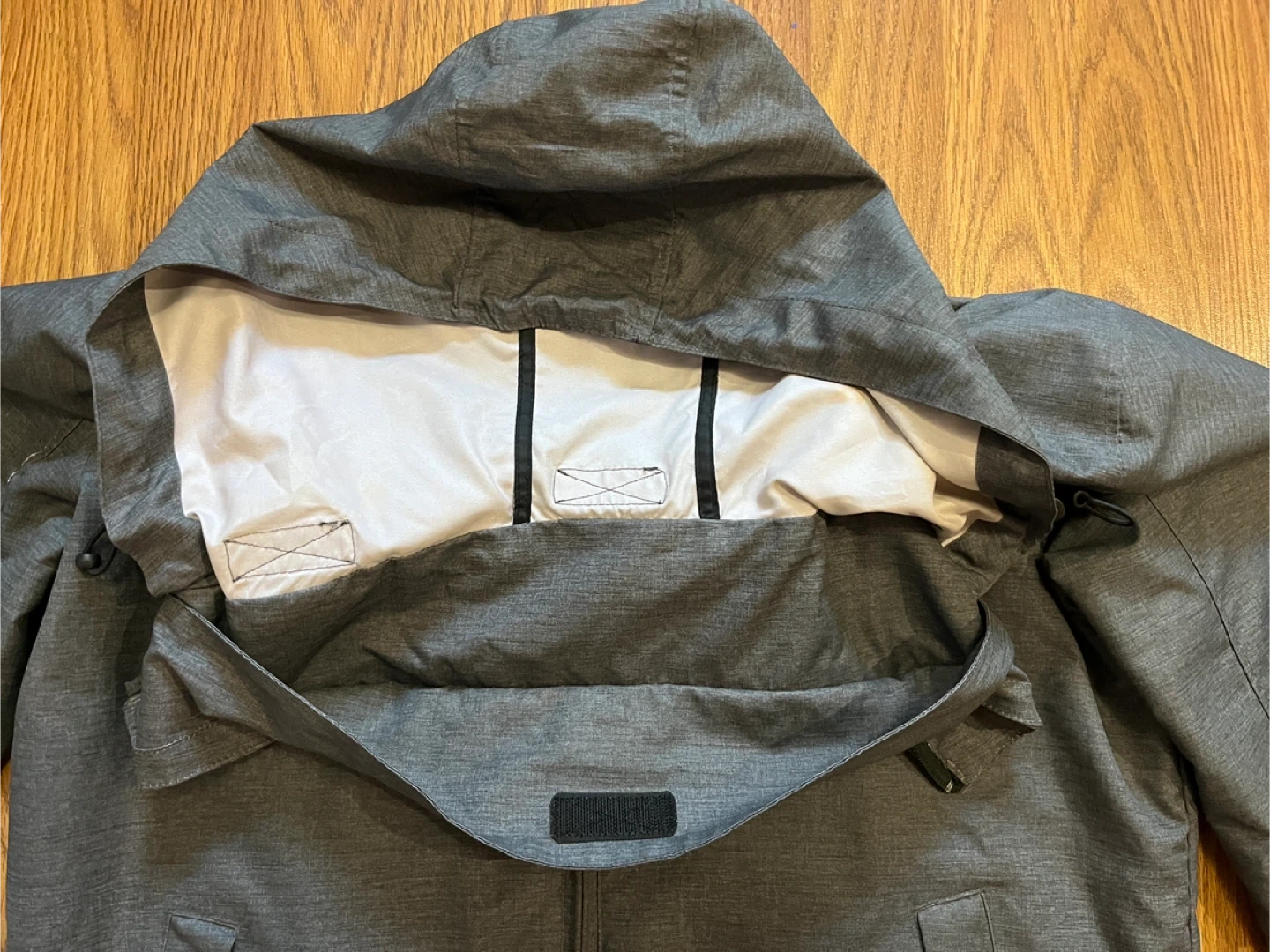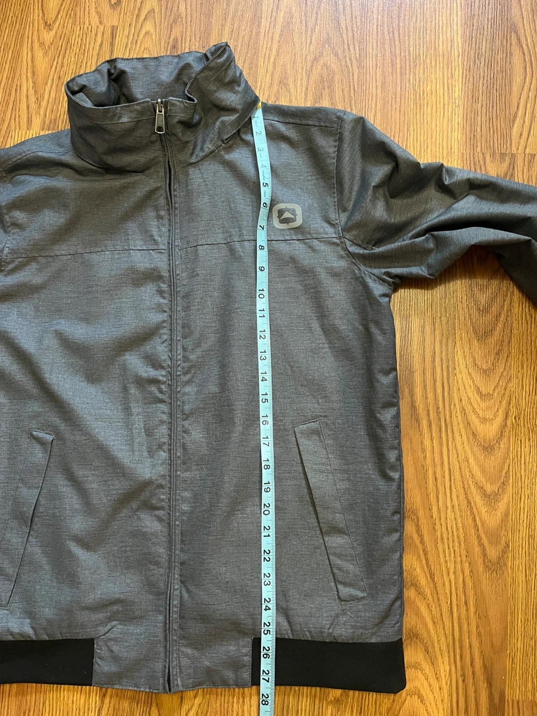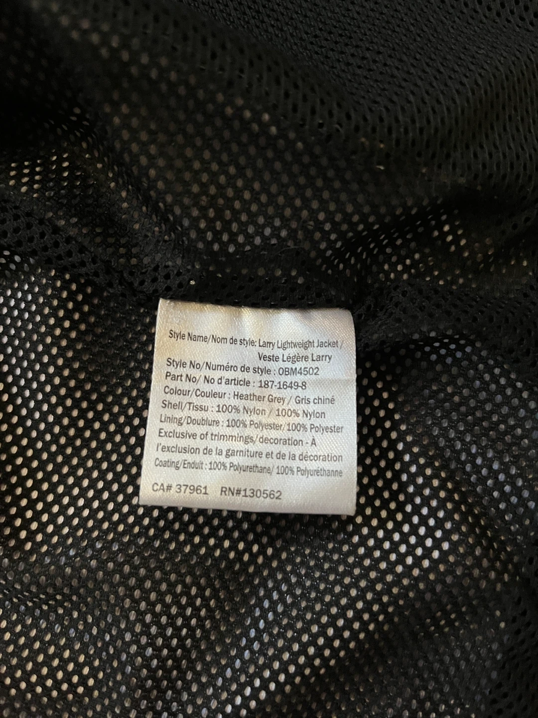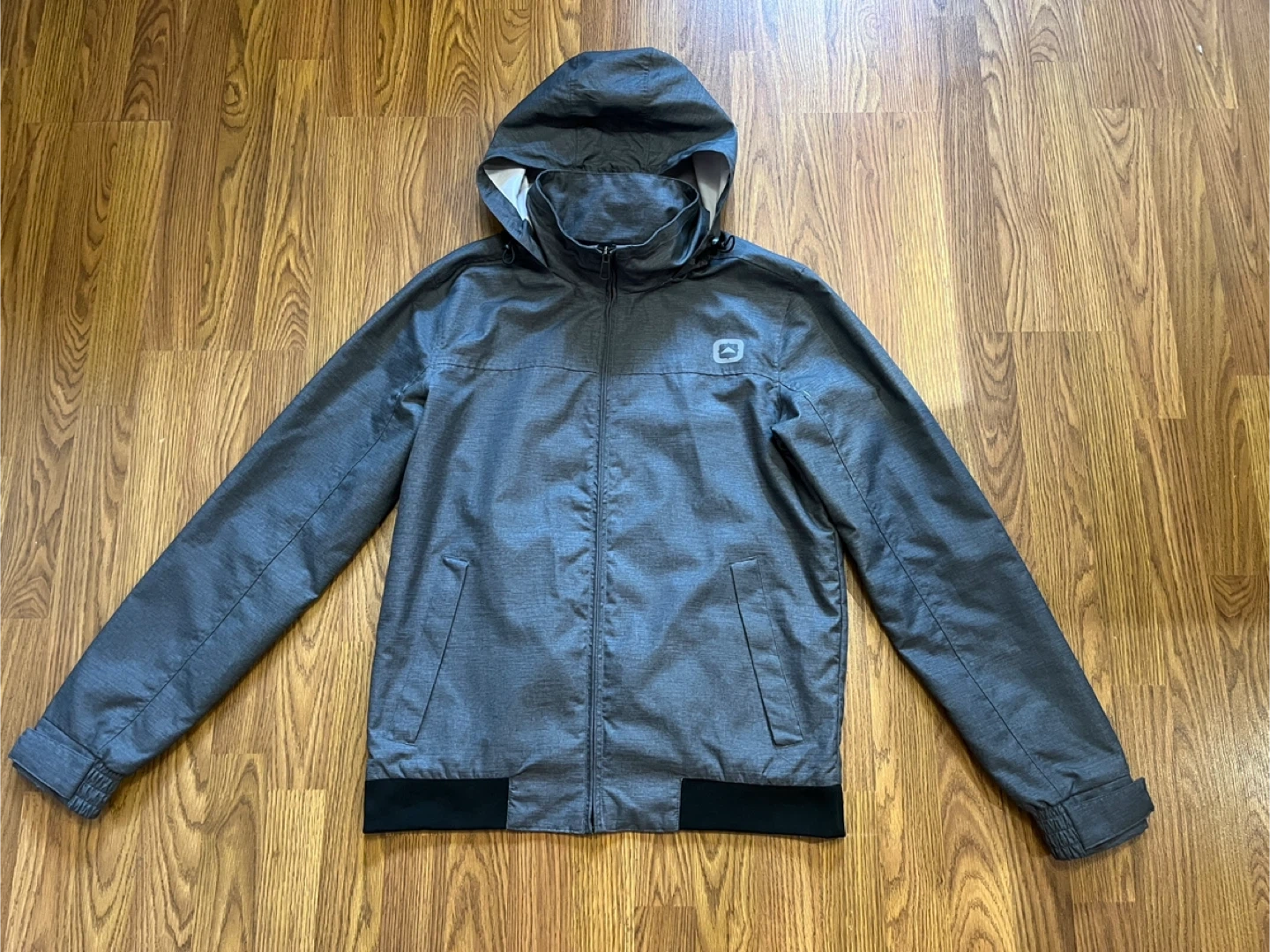 Outbound men’s lightweight ‘Larry’ hooded jacket, size small. Breathable, water-resistant nylon shell with mesh lining. Zip closure, adjustable cuffs, ribbed waistband, and roll-away hood. Excellent condition with light white streaks on inner upper sleeves. Smoke-free home. Flat measurements: • Pit to pit: 22” • Length: 27.5” • Hip: 19.5” • Sleeve: 27.5” Pickup in Oshawa - Harmony/Rossland area