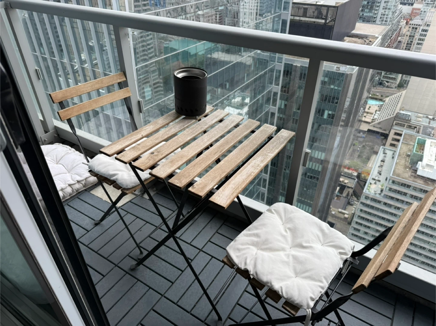 Selling a cute little bistro set, perfect for a small balcony or patio! It includes a table and two chairs with comfy cushions. Great for enjoying your morning coffee or a relaxing evening outdoors. The set is in good condition and ready for a new home!