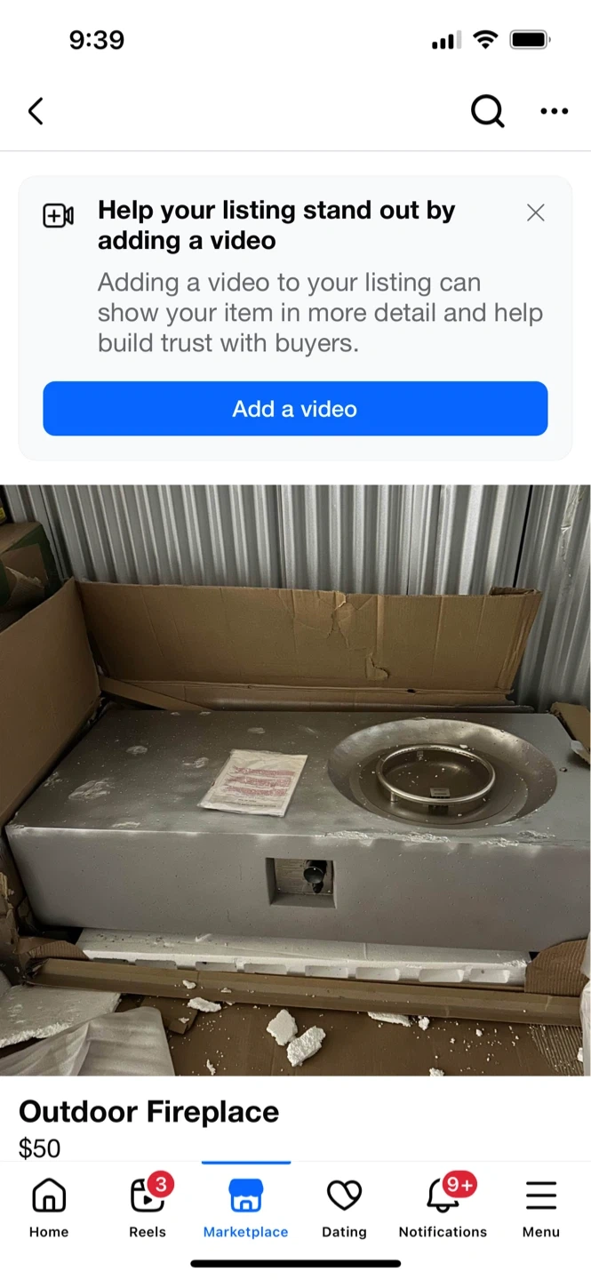 Outdoor Fireplace - $50 Dimensions 56” W X 26” L X 15” Tall