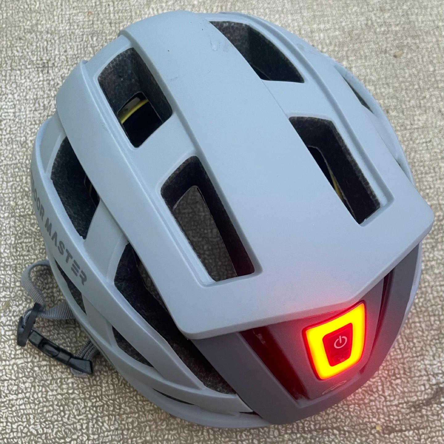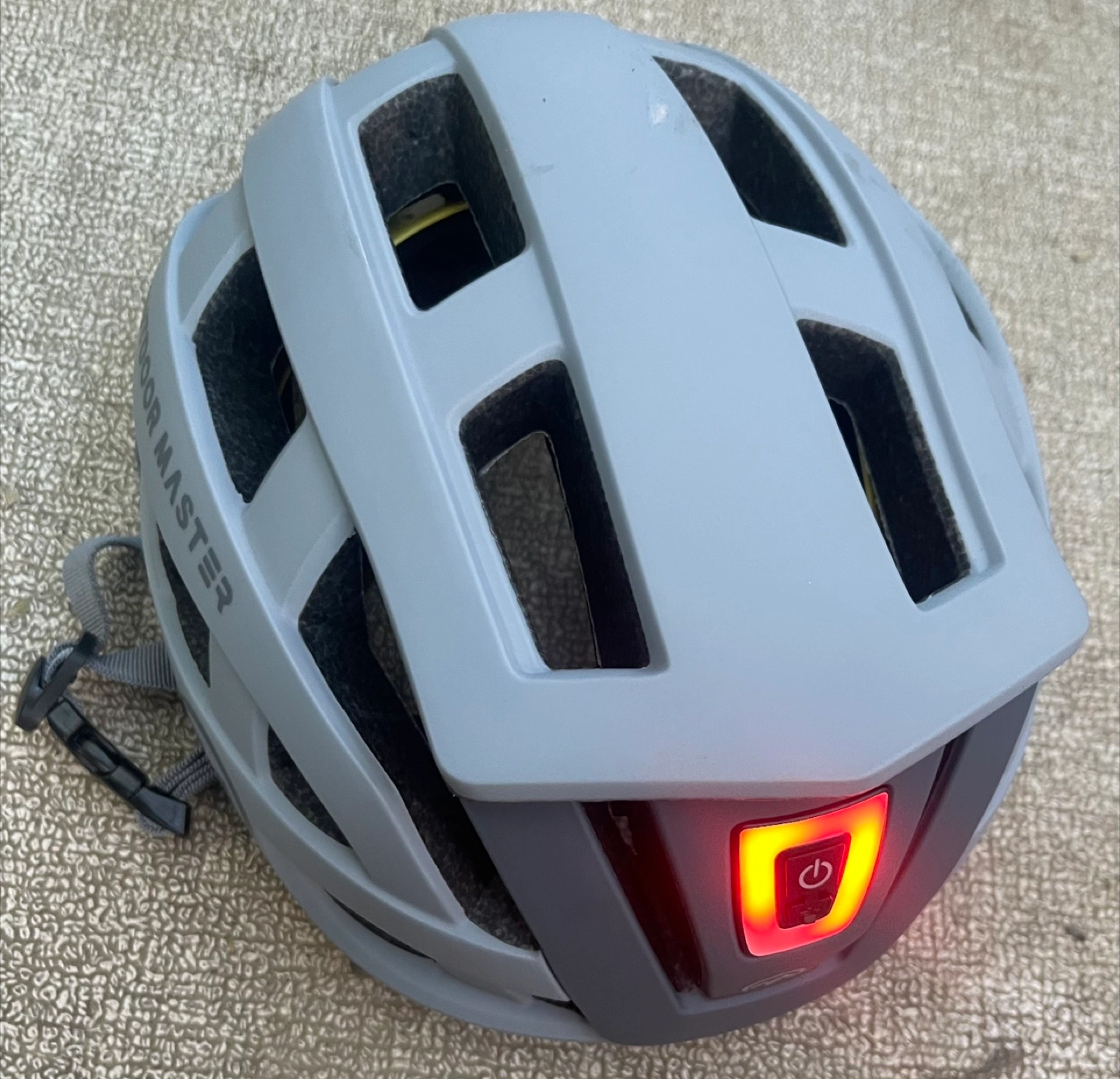 This is an Outdoor Master bicycle helmet, offering great protection and visibility on the road. It features an integrated LED light for enhanced safety during low-light conditions. It's a size large. Key features include: * Advanced Safety with MIPS *. Rechargeable Helmet Light *. Optimal Ventilation *. Keep Comfort & Warmth *. Customizable Fit and Size *. Certified by CPSC and ASTM Standards **** USB-C cord not included ****
