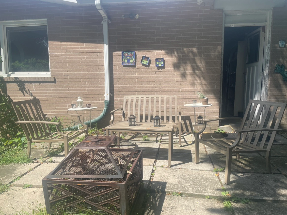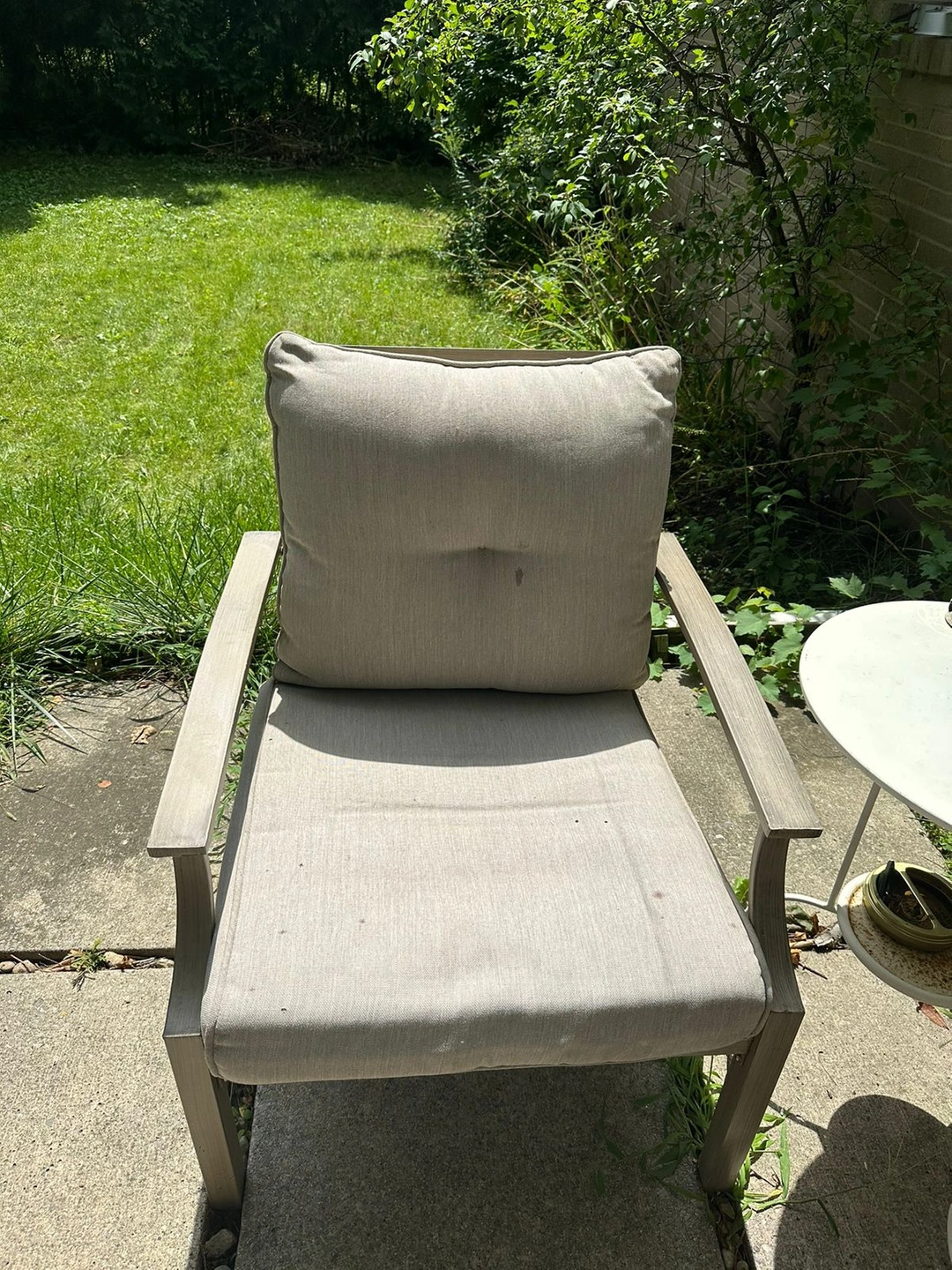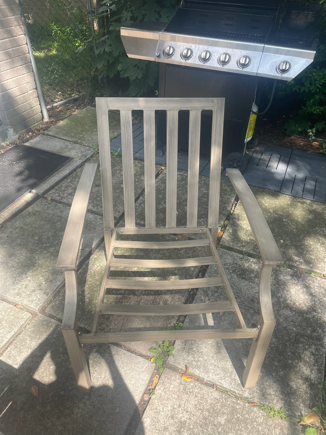 16This patio set includes a love seat, two chairs and a coffee table. The set is in good condition.