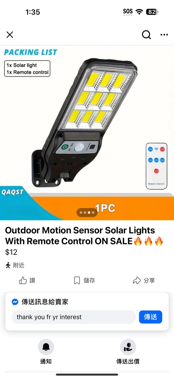 19Selling an outdoor motion sensor solar light with a remote control. It comes with one solar light and one remote control. The dimensions 22.5cm x 8.4cm. Perfect for adding some extra light to your yard or driveway! pick up at aurora