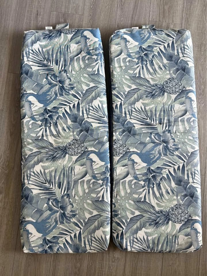 Selling a pair of high-quality, gently used CANVAS Summer Palm Patio Bench Cushion. Water- and stain-repellent, and fade -resistant fabric, with a tropical pattern. Dimensions: • Length: 119 cm • Width: 45 cm • Thickness: ~10 cm These patio cushions are perfect for outdoor settings, designed with key features like Tripel™ fabric protection which protects against water, stains, and fading. They are also reversible, giving you the ability to rearrange your patio furniture however you would like. Smoke-free home. lightly used – no tears, or stains. $100 for the set of 2. Great deal for anyone refreshing their outdoor space 📍Pickup in Dunbar/Southland