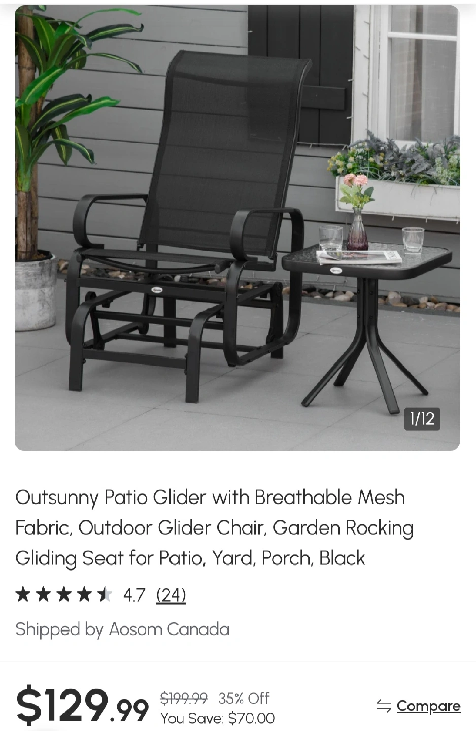 BRAND NEW IN FACTORY SEALED BOX!!! Black Outsunny Patio Glider with Breathable Mesh Fabric, Outdoor Glider Chair, Garden Rocking Gliding Seat for Patio, Yard, Porch. $80 FIRM Cash only. Pickup only. CHECK OUT MY OTHER ADS!!!