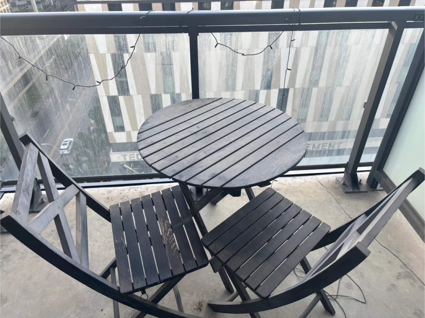 18Selling a cute little outdoor table and chairs set. It's a dark wood color and perfect for a small balcony or patio. The set includes a round table and two matching chairs. It's in decent condition and can be picked up anytime before Oct 23rd.