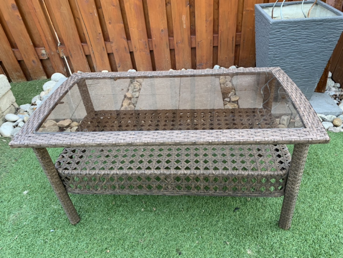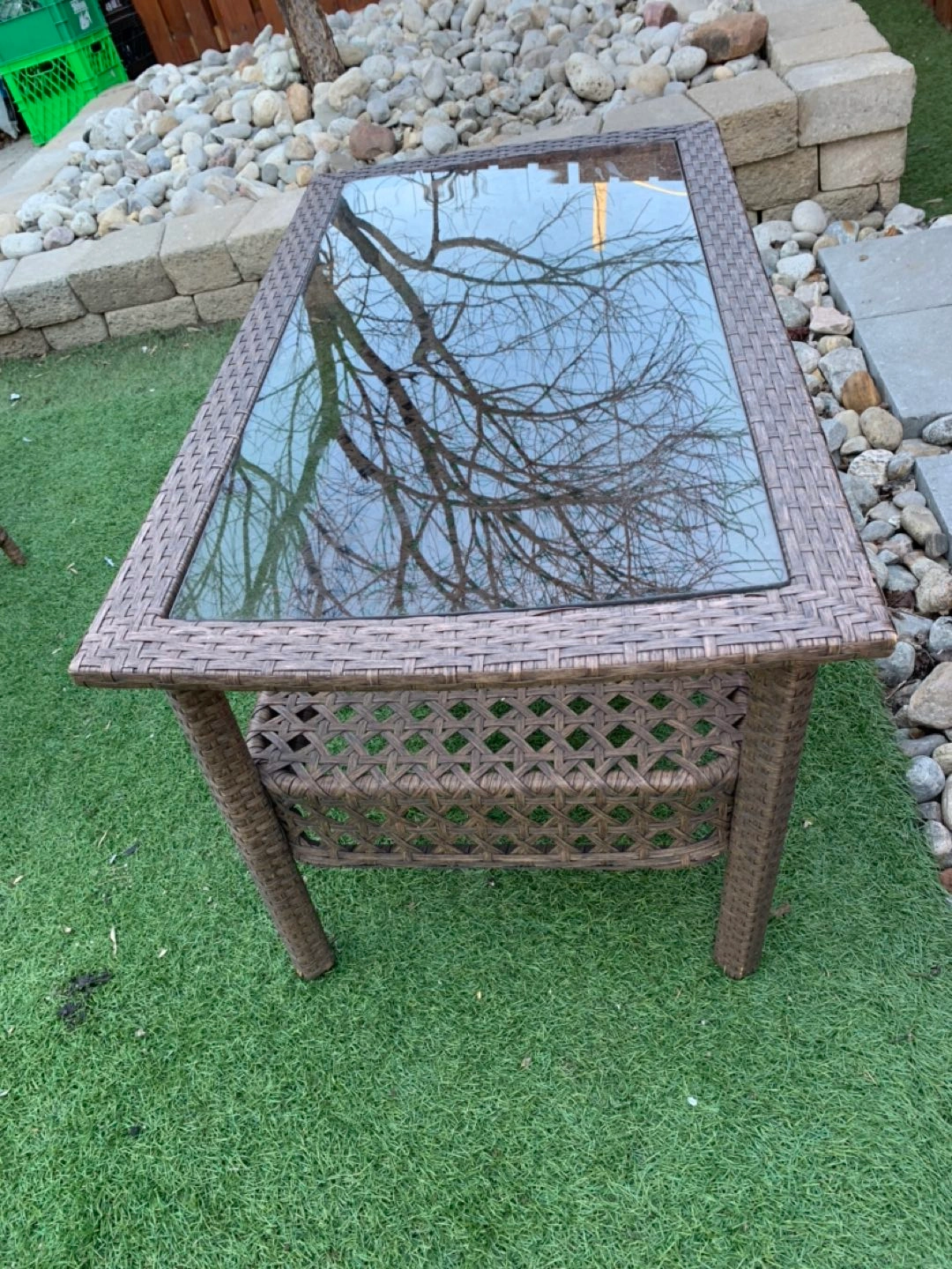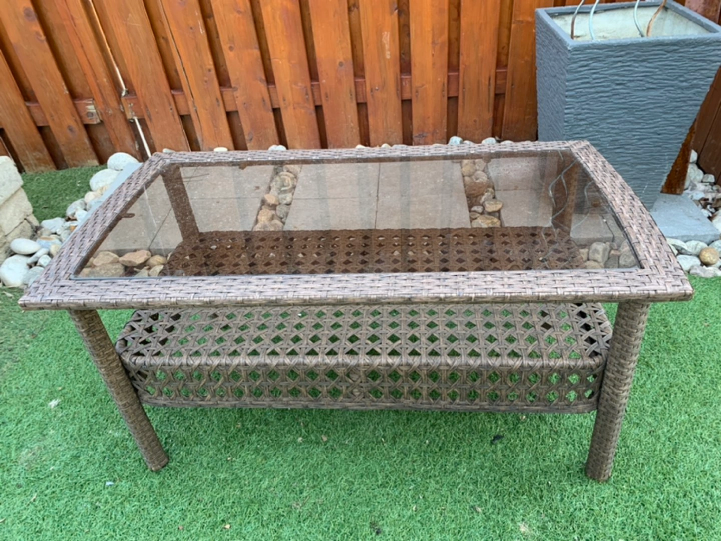 Outdoor brown wicker coffee table. Measures at 21” W x 18” H x 38” L.. Pick up only. Closest intersection is Jane St and Eglinton Ave west. Also have a matching chair for sale too. Please see my other