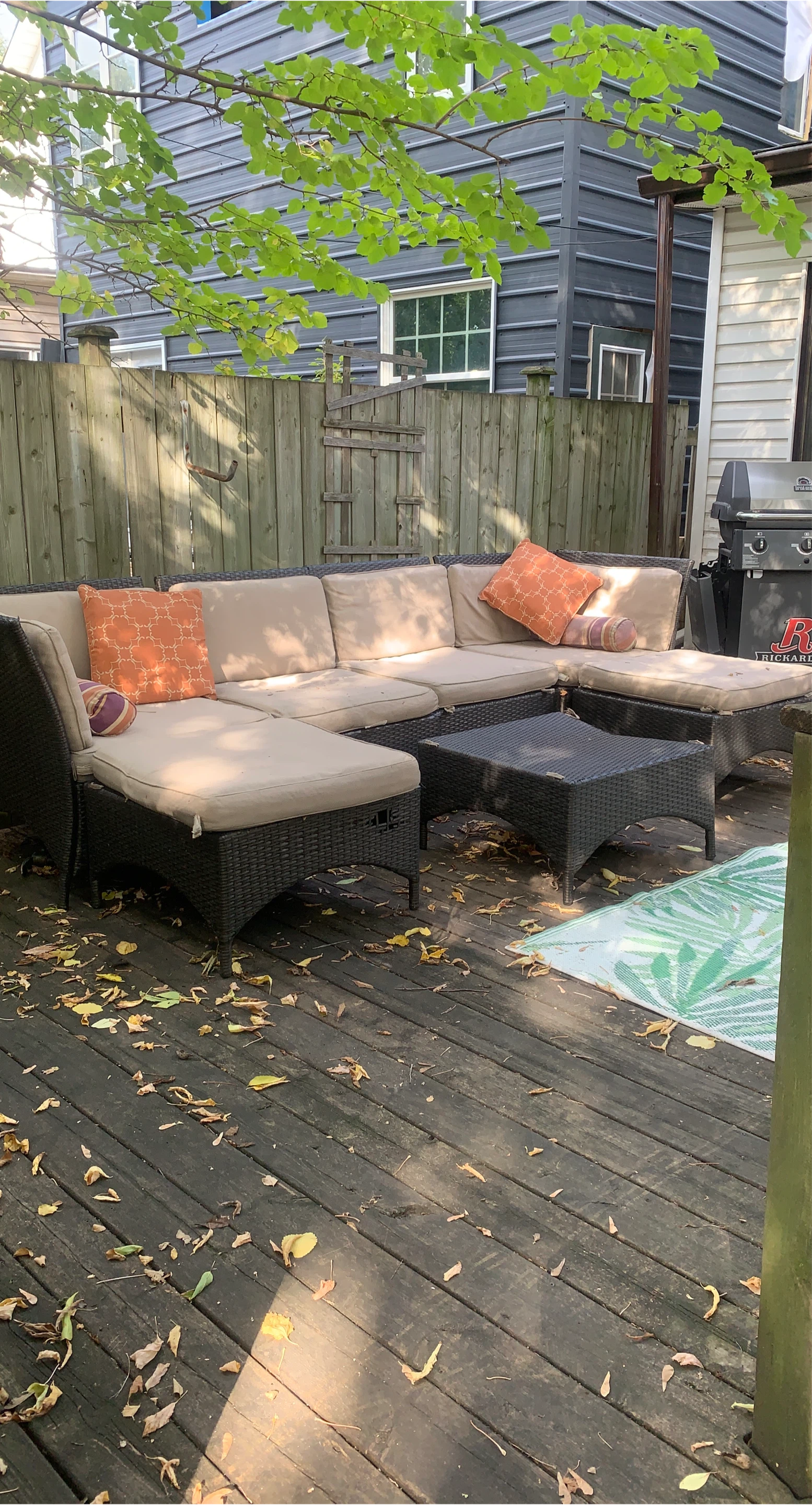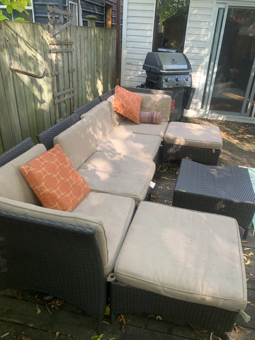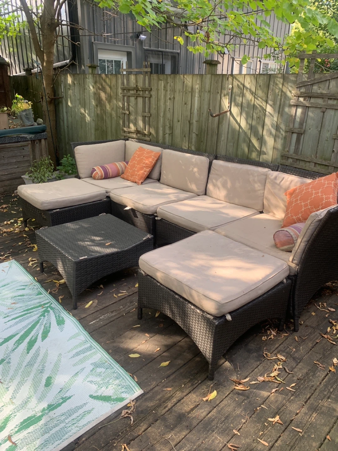 Selling a lovely outdoor wicker sectional sofa set! This set includes multiple seating pieces and a table, perfect for creating a cozy outdoor living space. The wicker material is durable and weather-resistant, making it ideal for Canadian summers. It's in great condition and ready to be enjoyed on your patio or deck!
