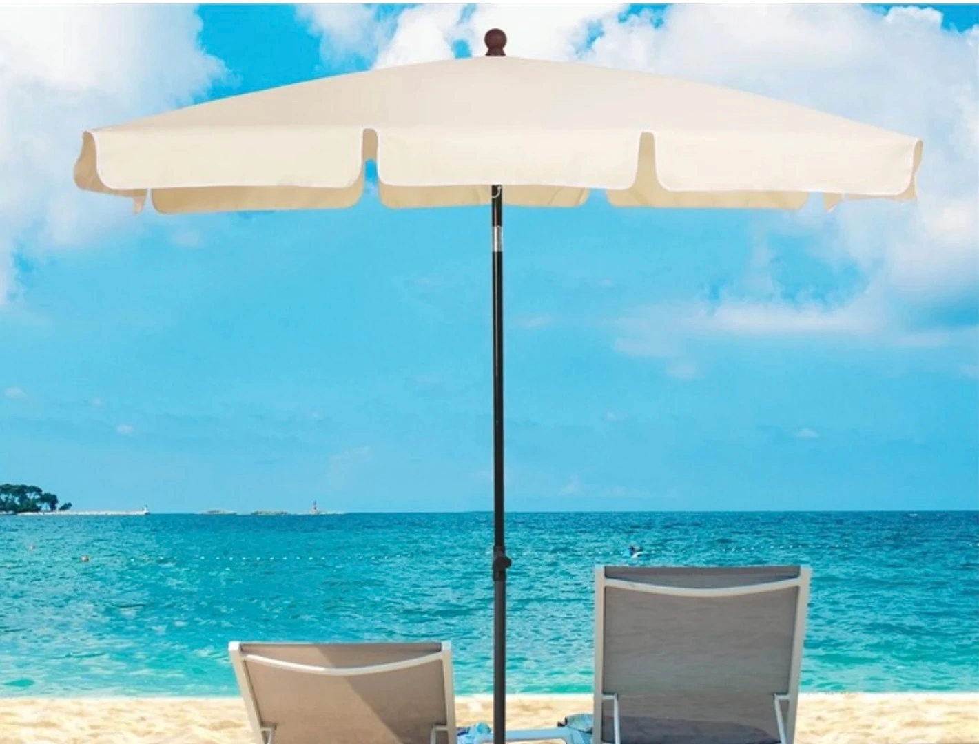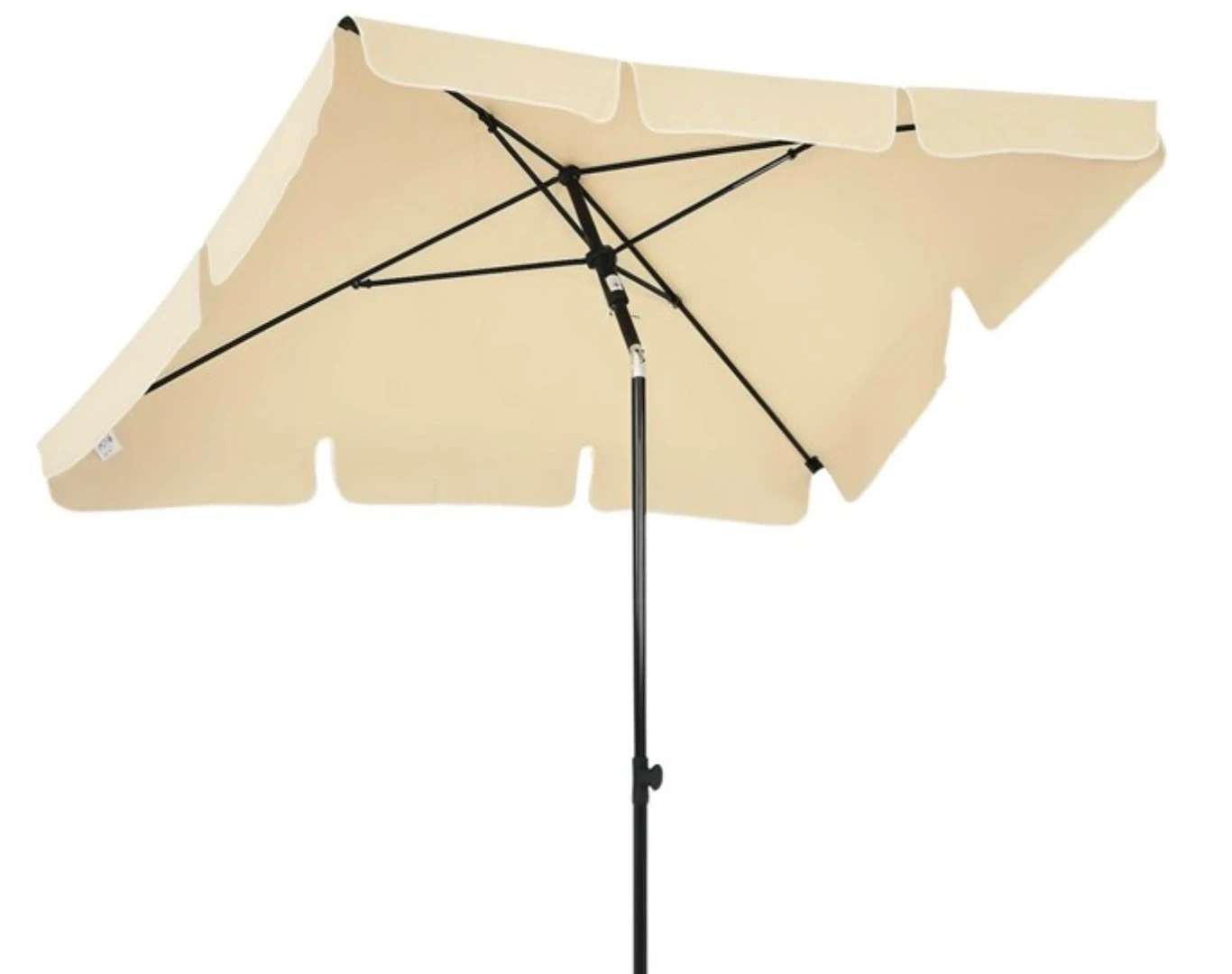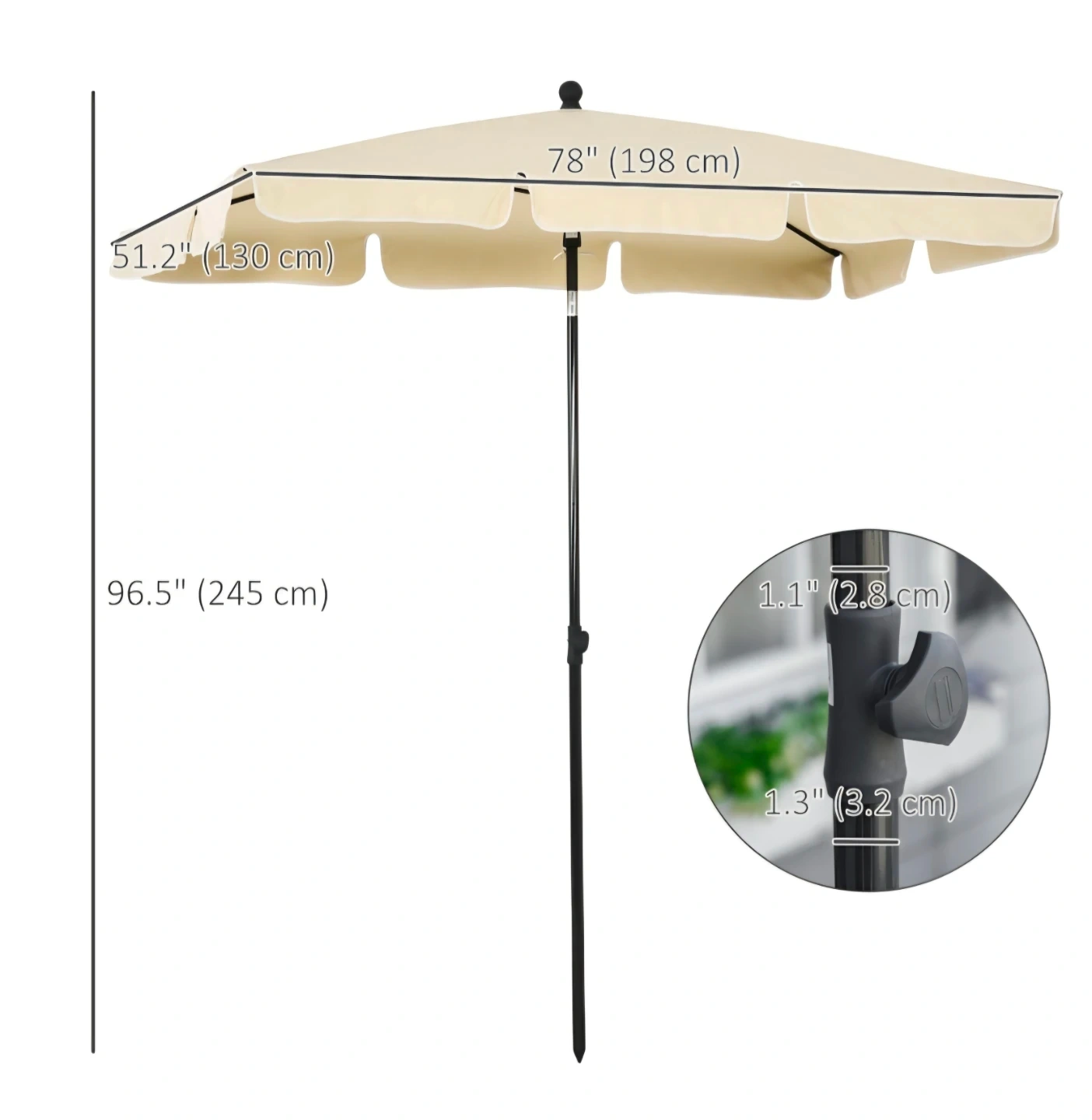 10This patio umbrella features a rust-resistant aluminum pole and a durable polyester canopy. The adjustable angle allows for easy shade control with a simple push button. It has a manual opening mechanism for quick setup and takedown. The umbrella's two-section design makes it portable for travel. Ideal for outdoor use, it measures 6.5 feet long by 4.3 feet wide and stands 8 feet tall. A 15 kg base is recommended for optimal stability. Overall Dimensions: 6.5' x 4.3' x 8' Item Weight: 7 lbs
