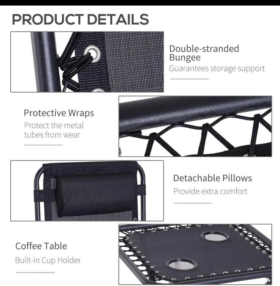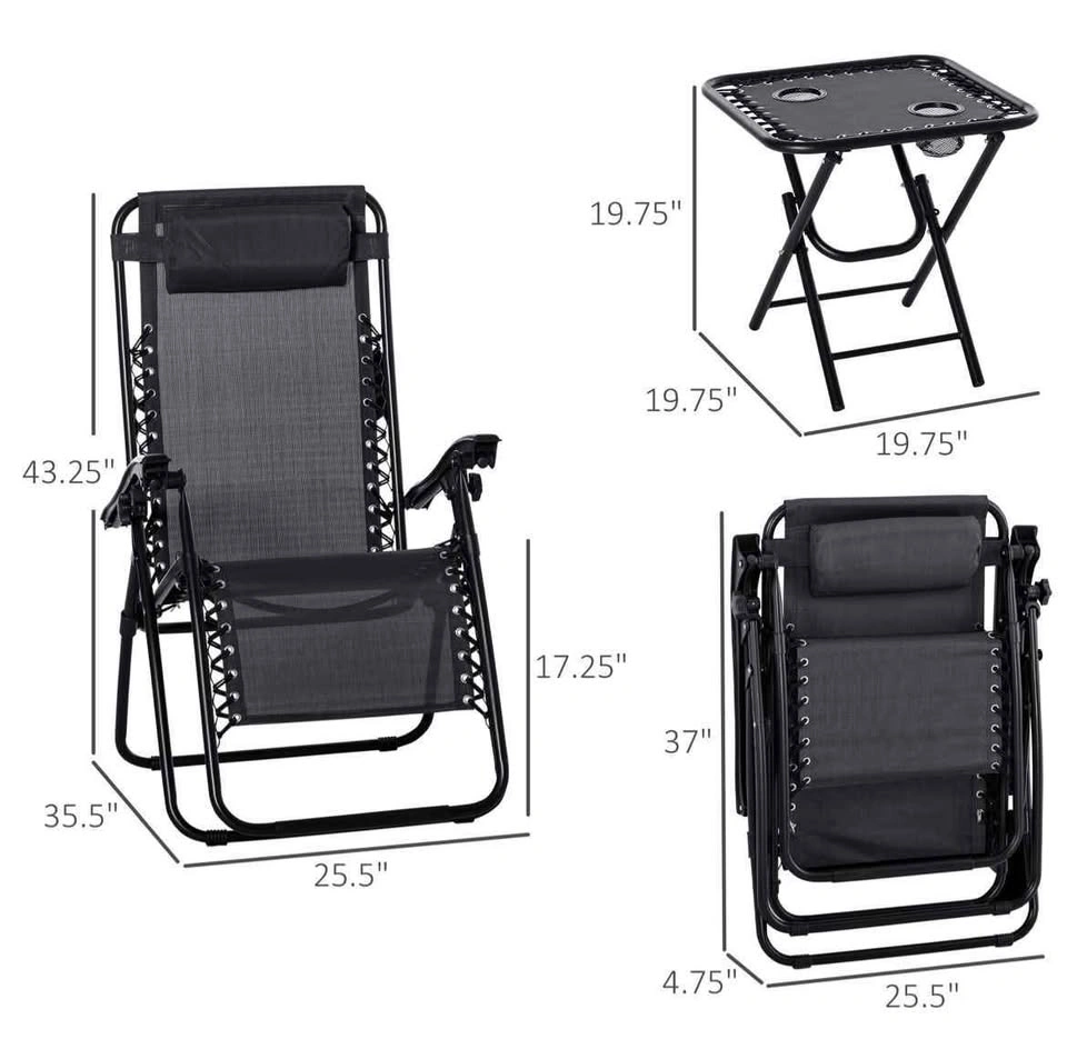 Outsunny Zero Gravity Chair Set of 2 Patio Chair with Side Table Cupholders and Pillows for Pool, Backyard, Lawn, Black #20 #9 84B-271BK
