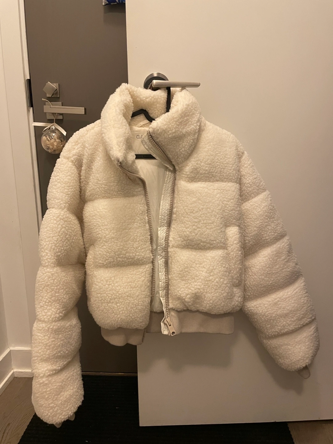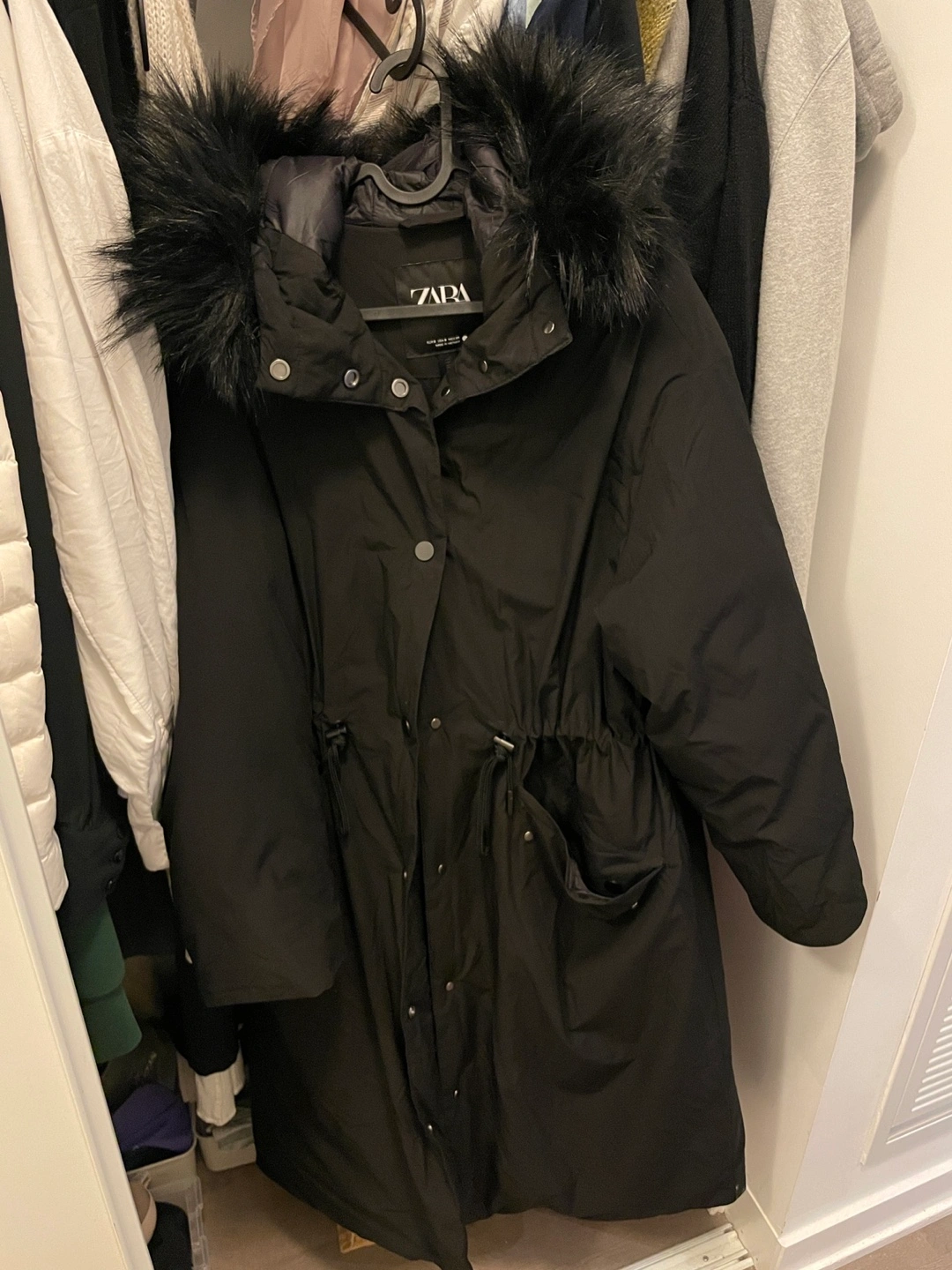 531. Zara black fur long puff jacket. small size but also medium size can fit clean and like new condition. $50 2. Garage cropped black puff jacket. small size. It’s clean and like new condition $20 3. Garage cropped fleece jacket small size. Good and like new condition $20 4. Leather Jacket. Korea brand ( the oir) Has 2 big pocket. Over size also can fit for men. Little scratch on the arm. $70 negotiable