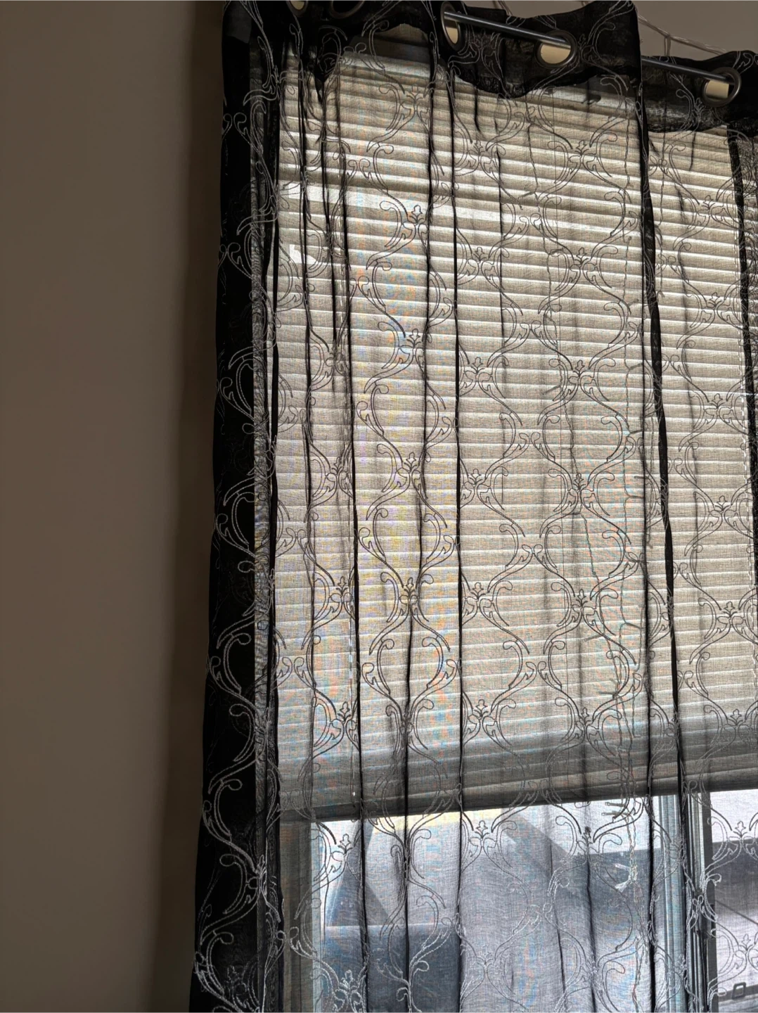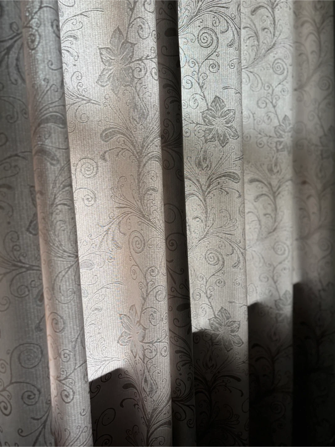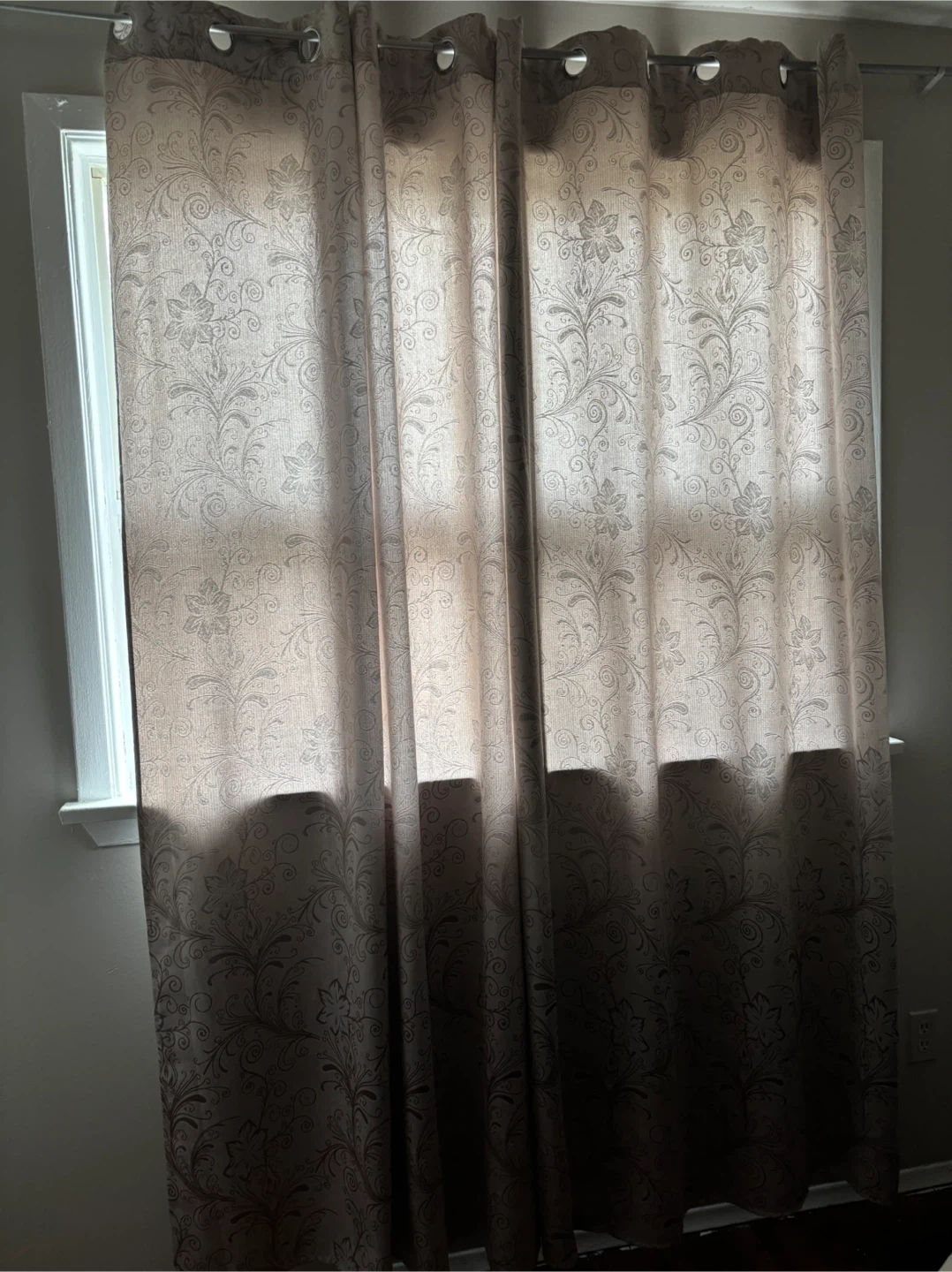 Sheer curtains with an elegant damask pattern. They're great for adding a touch of style to any room. Light filters through beautifully.