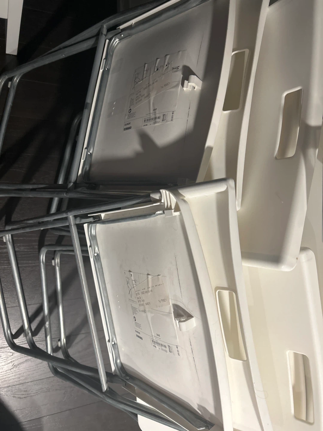 It's easy to store and great for extra seating when you need it. Metal frame with a plastic seat and back.