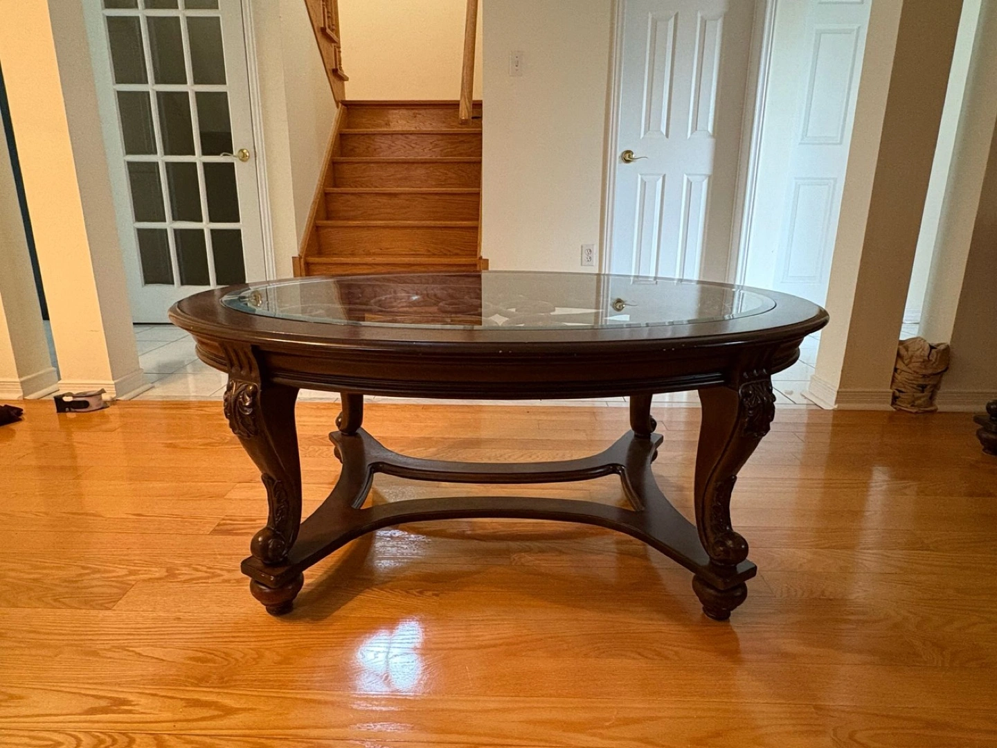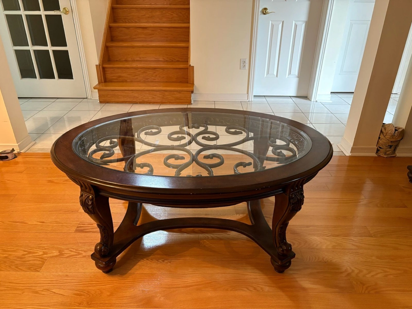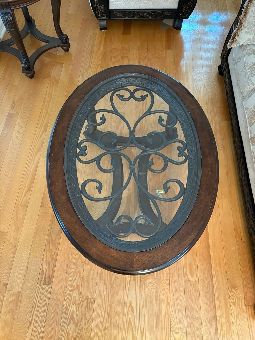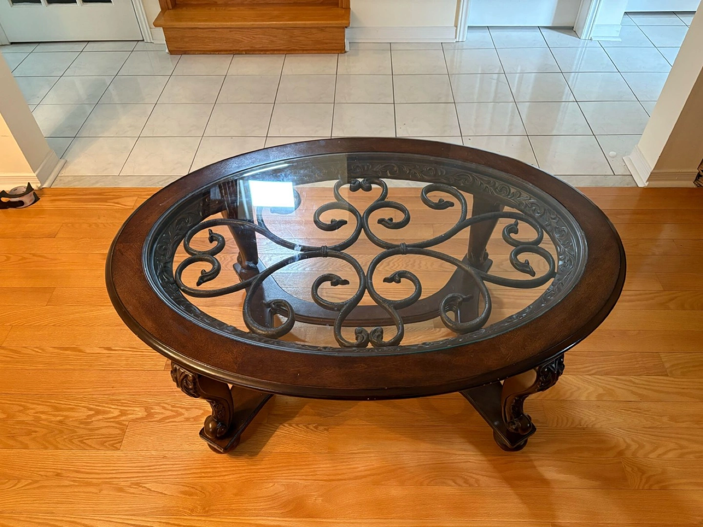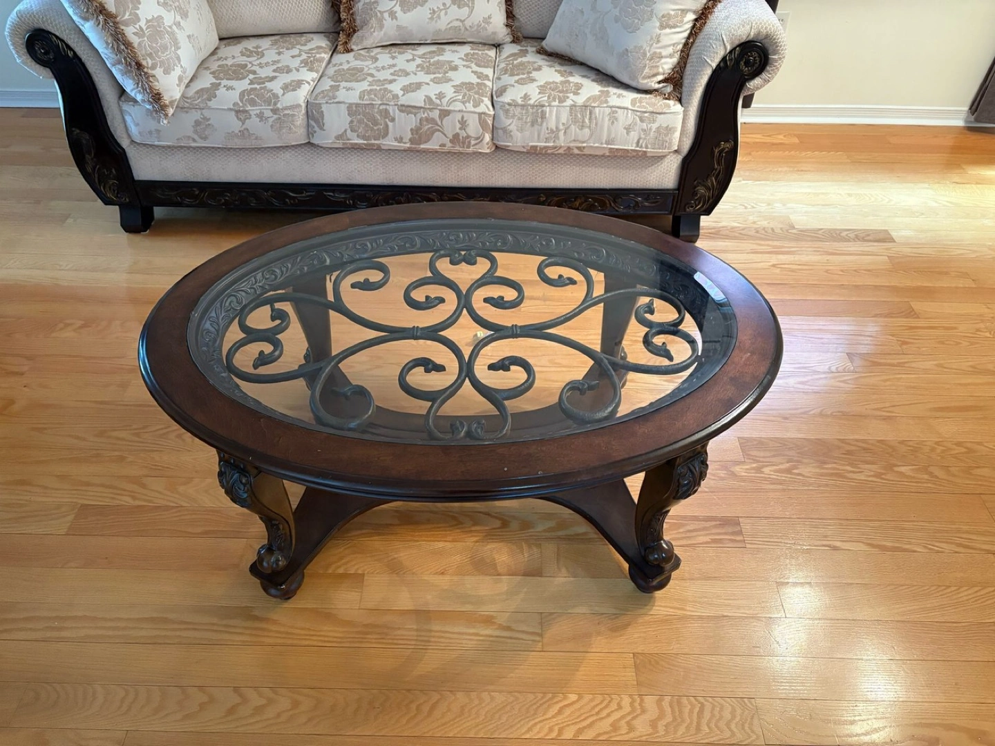 Glass coffee table with a side table