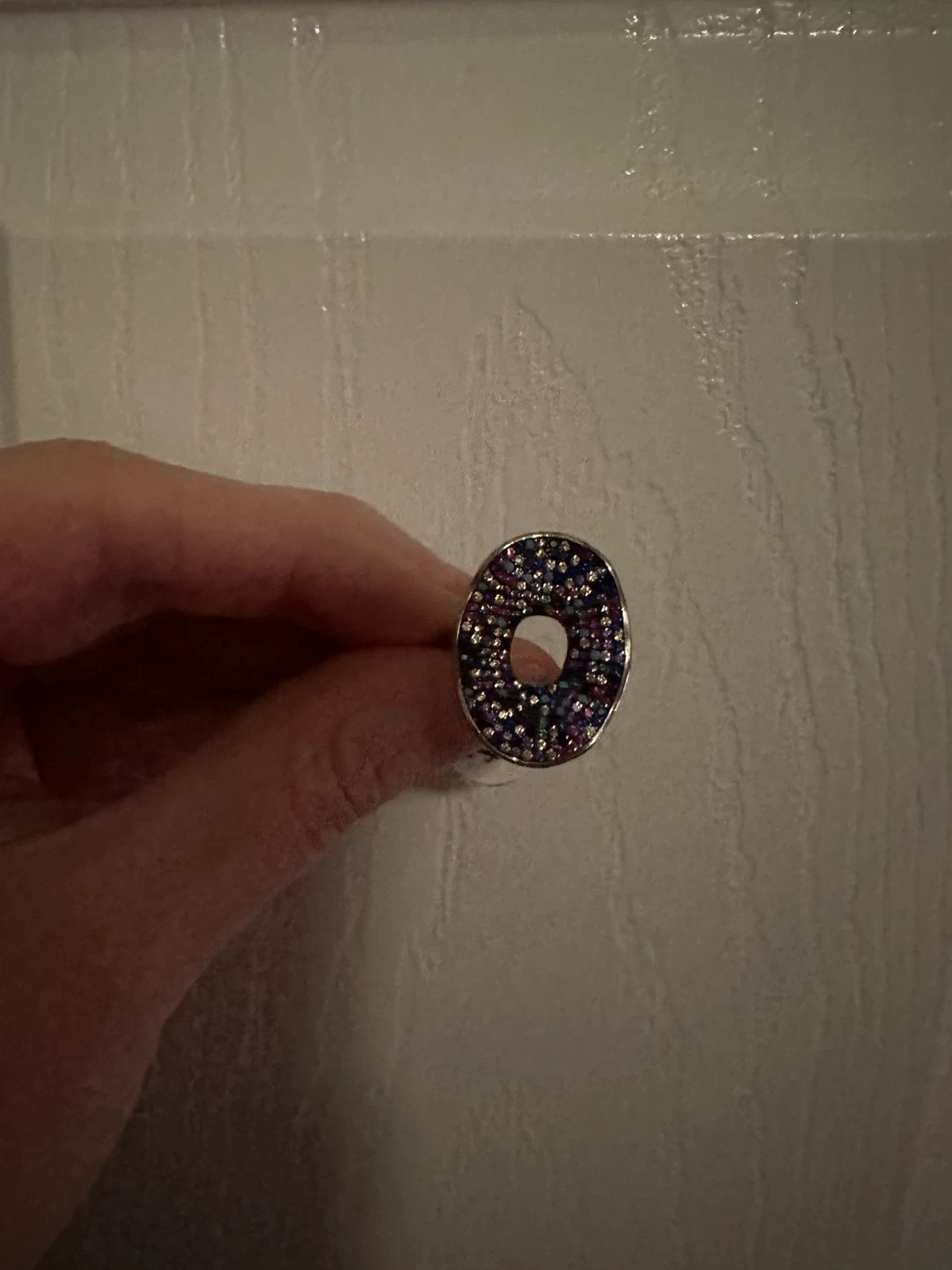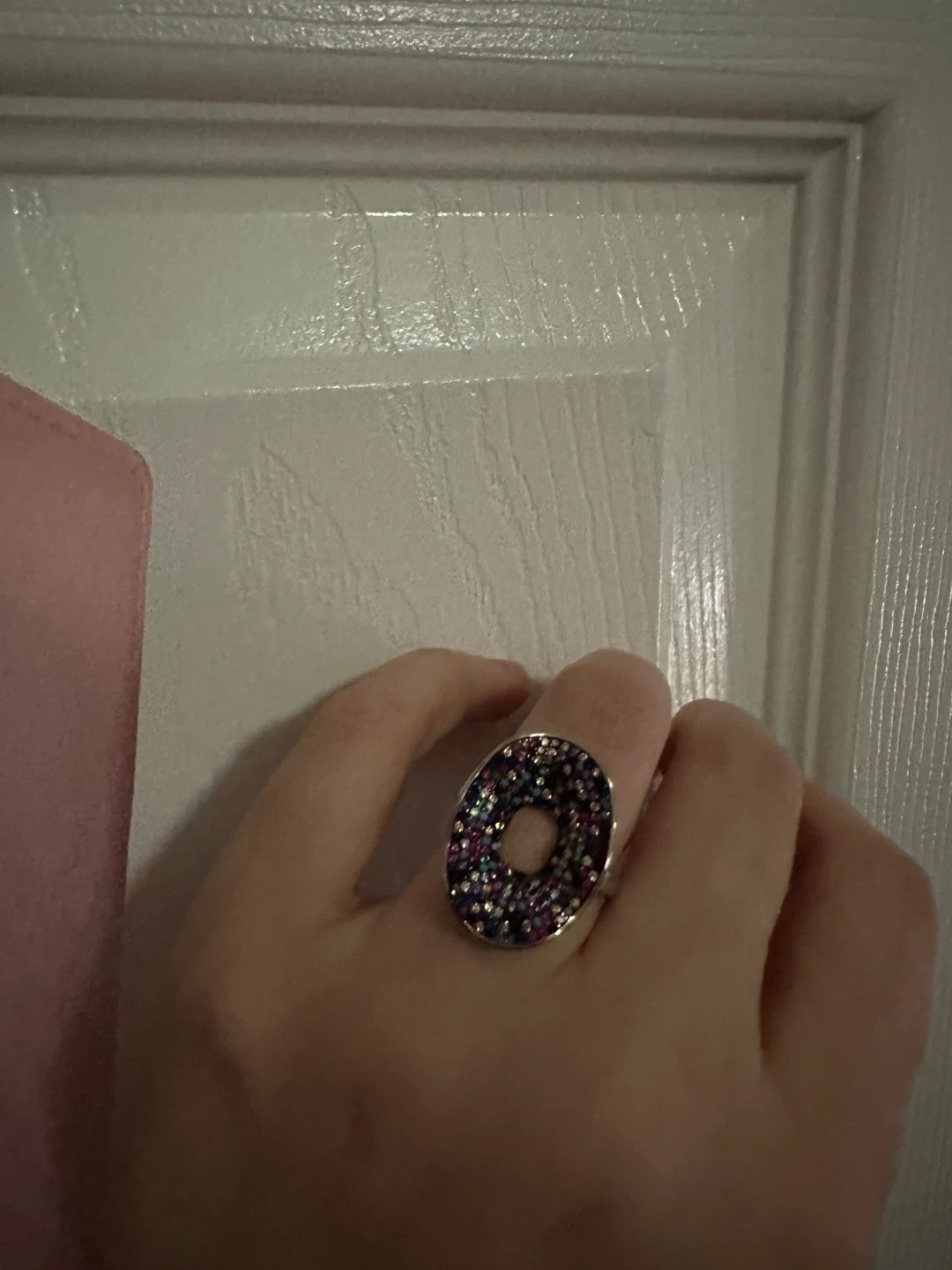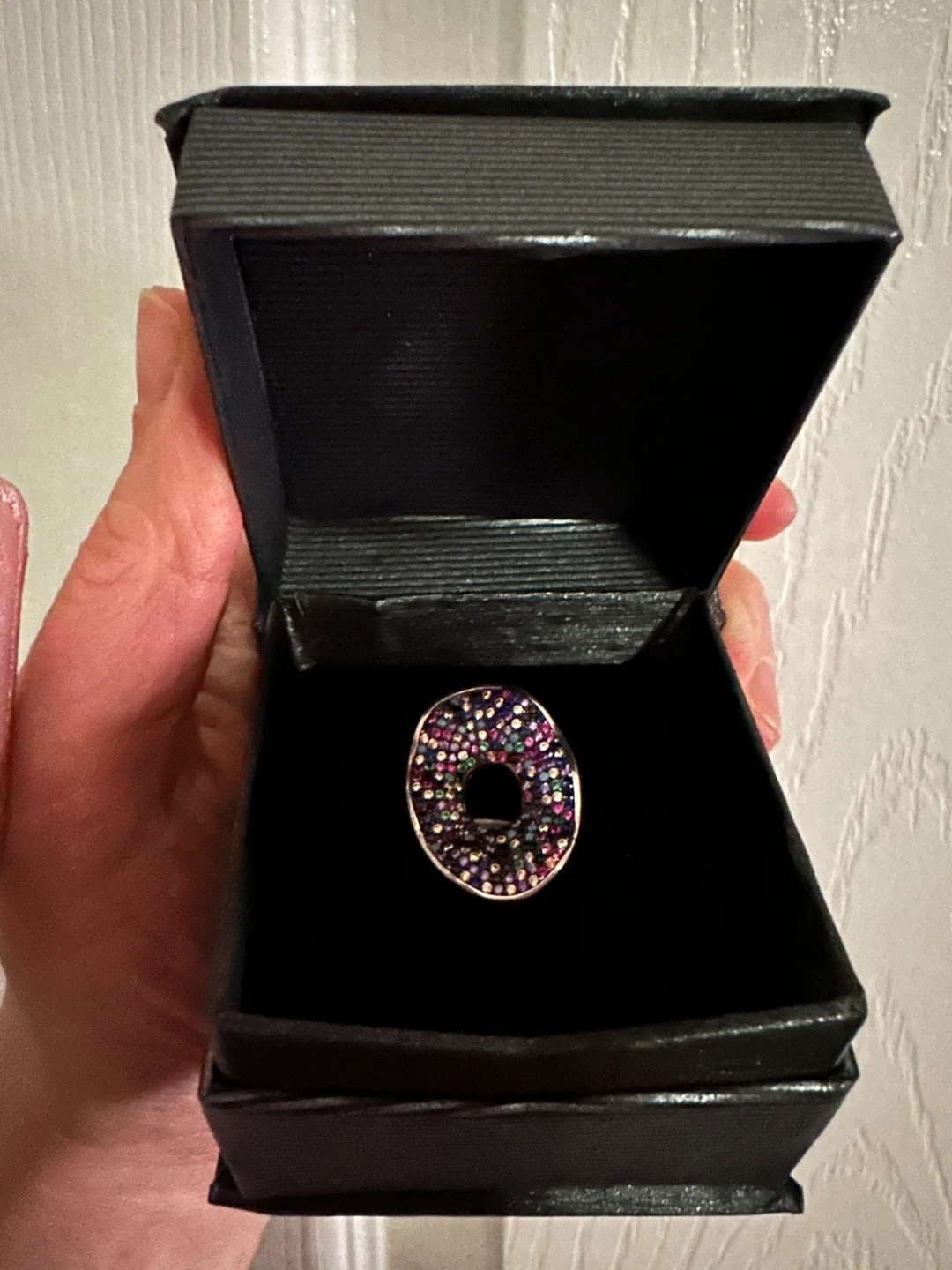 349This is a beautiful oval ring with lots of small multi-coloured stones. Sterling silver 925 size 6