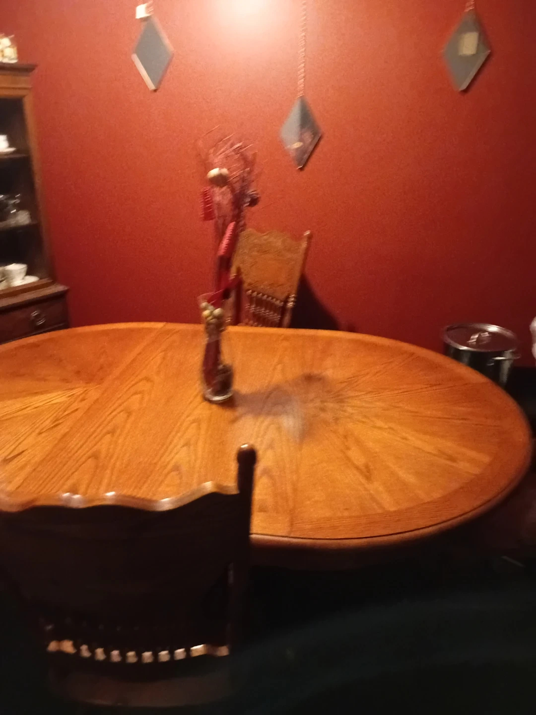 0Selling a beautiful oval wooden dining table with chairs. It's in good condition and ready to be the centrepiece of your dining room. The table has a lovely wood grain pattern. Chairs are included!