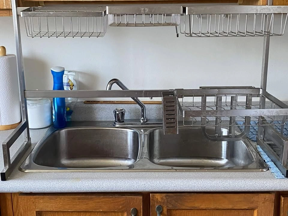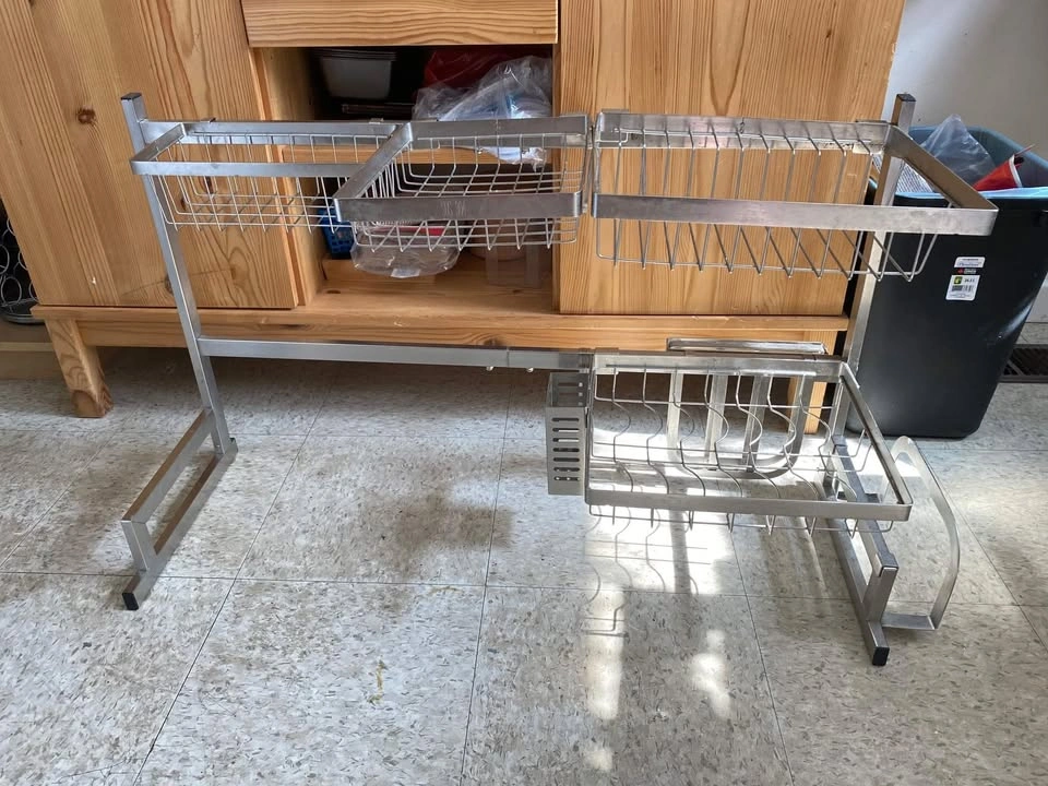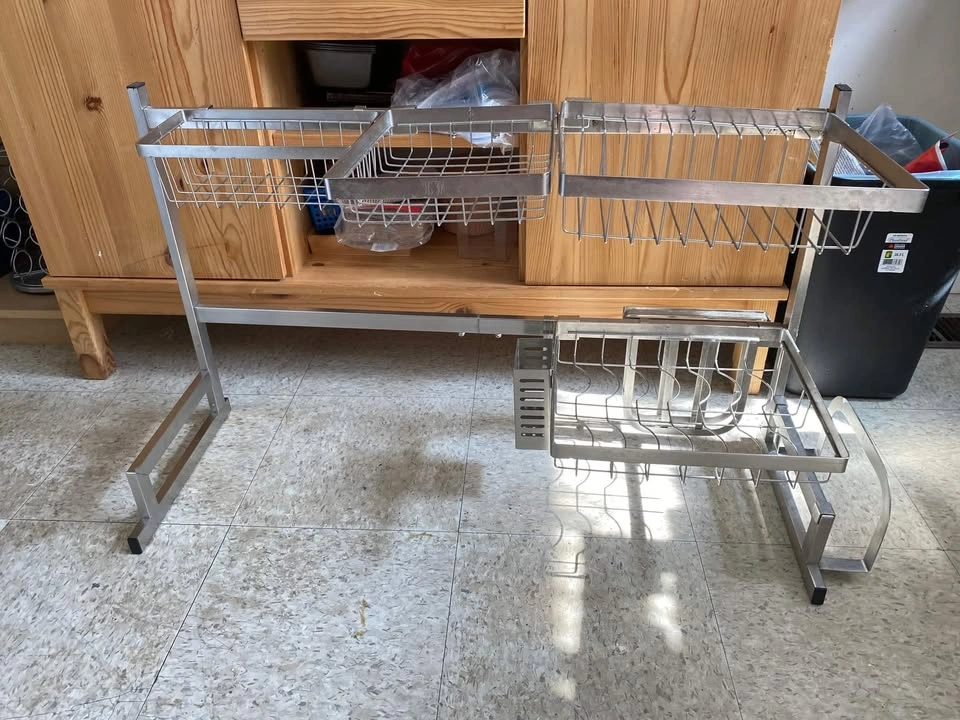 Over the sink dish drying rack. 83 cm long/53 cm high. In good condition