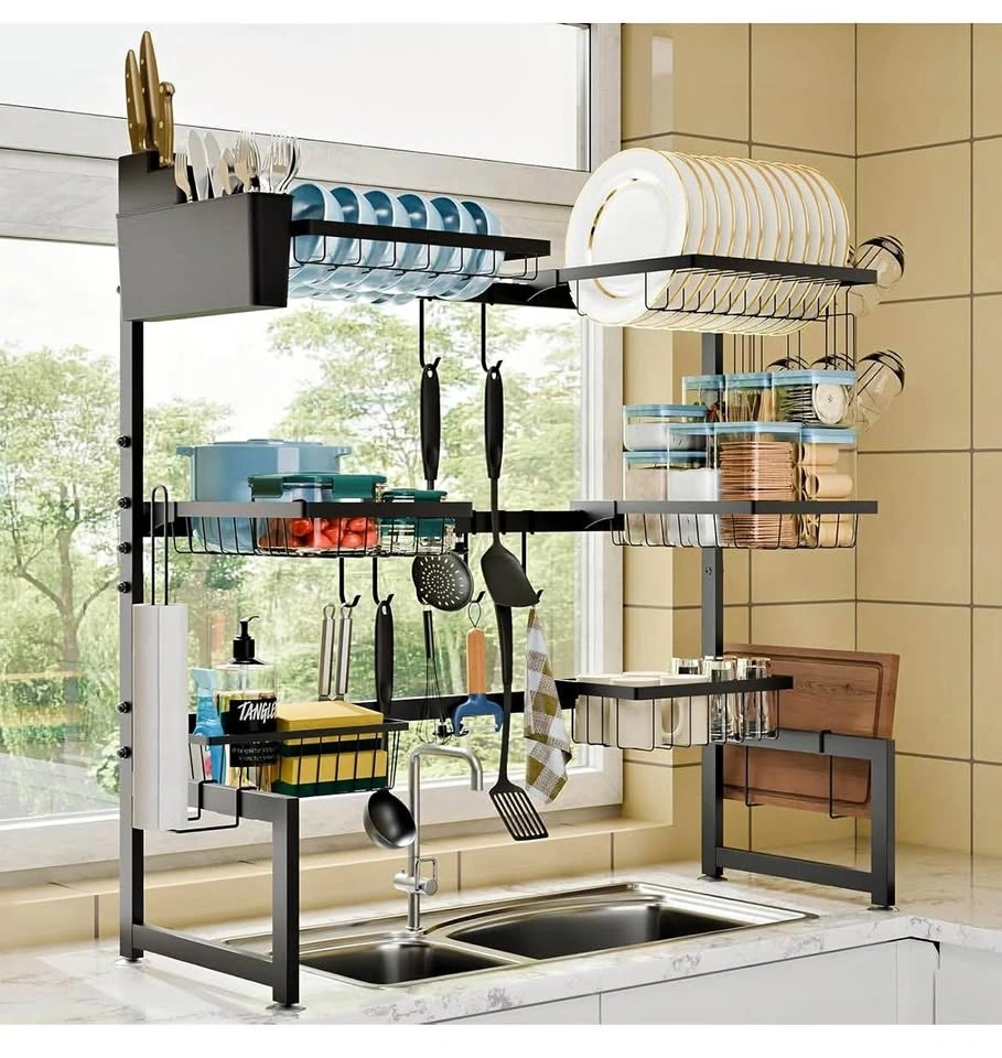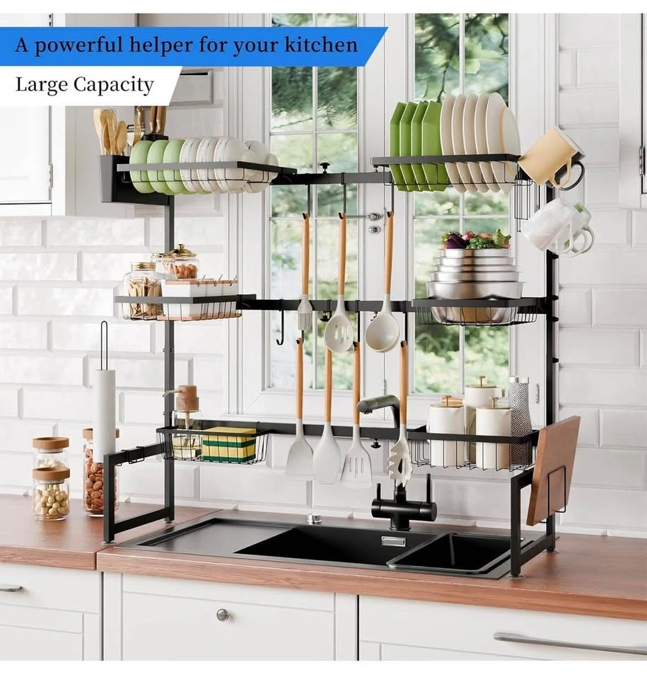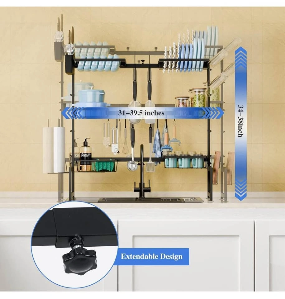 Fixwal Over The Sink Dish Drying Rack XLarge 3 Tier Dish Drainers Drying Rack 31"-39.5" L x 12" W x 34"-38" H Extendable Large Capacity Sink Rack with 6 Baskets, for Saving Space, Stainless Steel