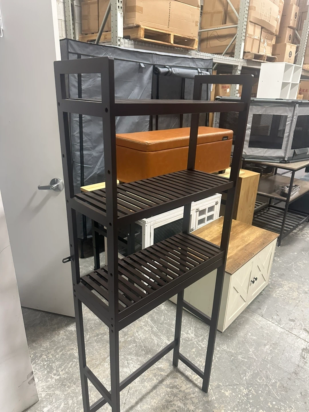 Declutter your bathroom with this over-the-toilet shelf! It's perfect for adding extra storage space above your toilet. The brown colour will fit in with most bathroom decors.