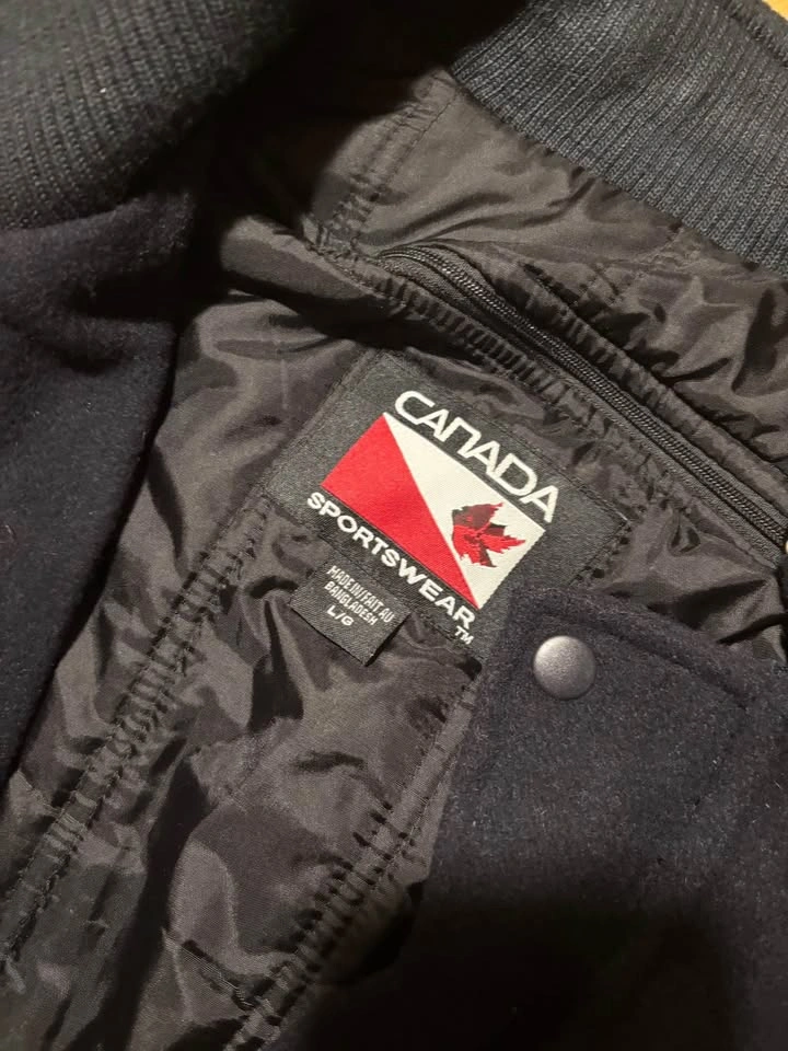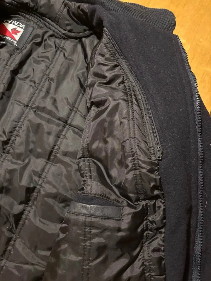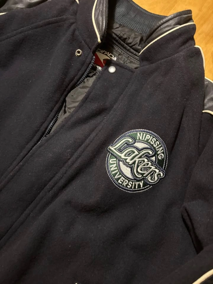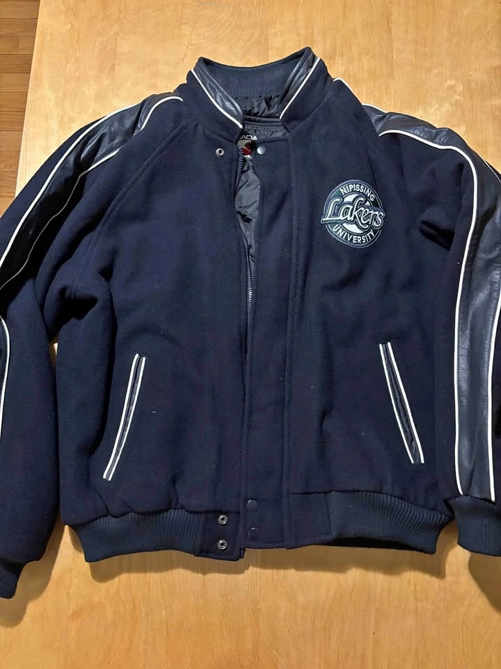 5Barely used men’s varsity jacket in excellent condition, thick & warm, excellent for the cold weather or to layer on top of other pieces. Size large. Has inside pockets. Richmond Hill or Yonge/Finch area