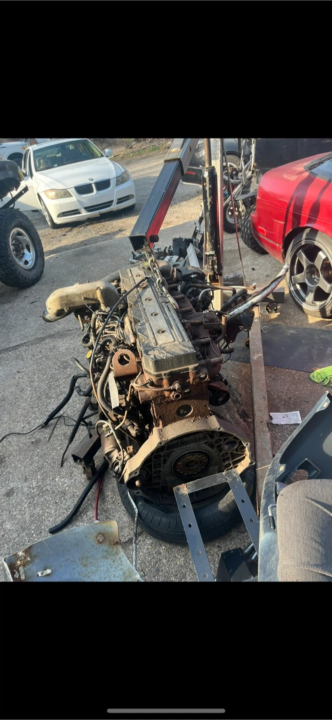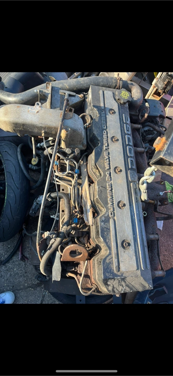 This is a used Dodge 24V Cummins turbo diesel engine. It's a complete assembly with visible components. Ready for direct swap!