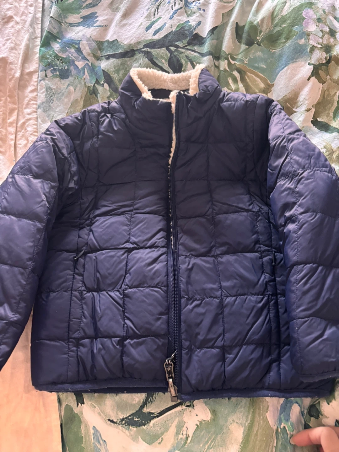Selling a Taion Mountainwear puff down jacket. It's a size M (120) and in great condition. One side the jacket features a cozy sherpa lining for added warmth and comfort, and can be worn double sides.