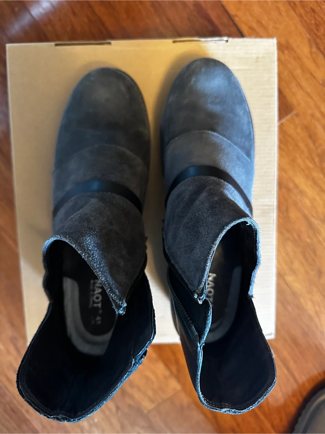 Grey suede and black leather ankle boots with side zippers. Naot Style “Emerald”. Barely worn, like new