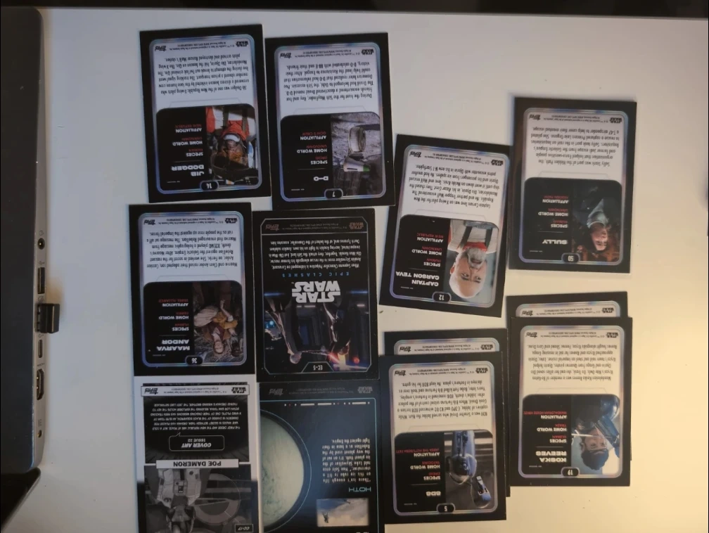 Selling a collection of Star Wars trading cards. A great addition for any Star Wars fan or collector! Each card features characters and scenes from the Star Wars universe. 21 cards in total. 3 have duplicates in excellent condition.