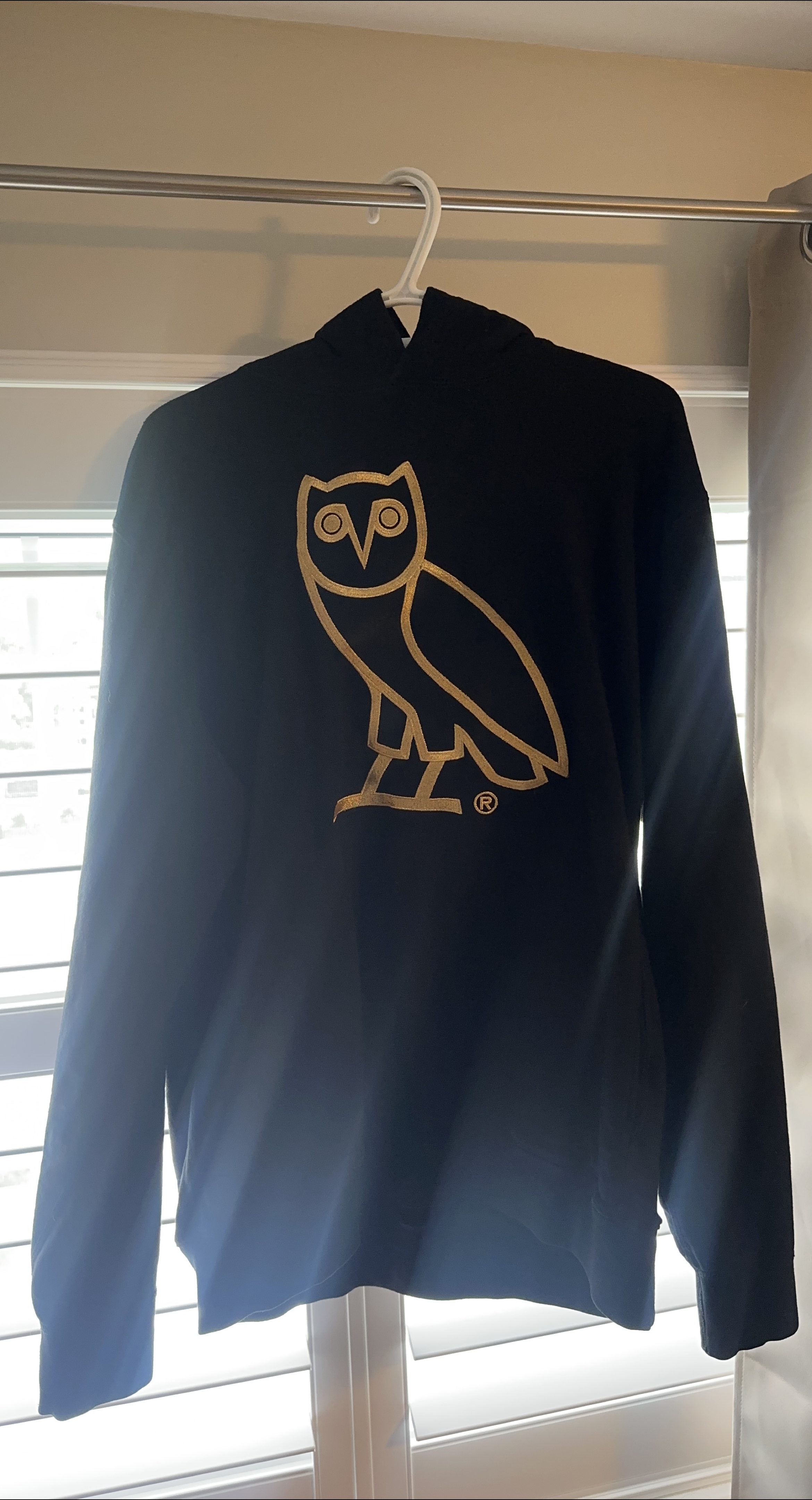 Selling a black OVO (October's Very Own) hoodie! The hoodie features the iconic OVO owl logo in gold on the front. It's new and super comfy!