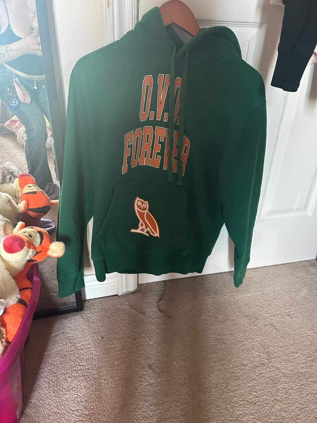 10Selling a green OVO Forever hoodie. It has the OVO owl logo on the front pocket. A cozy and stylish addition to your wardrobe!