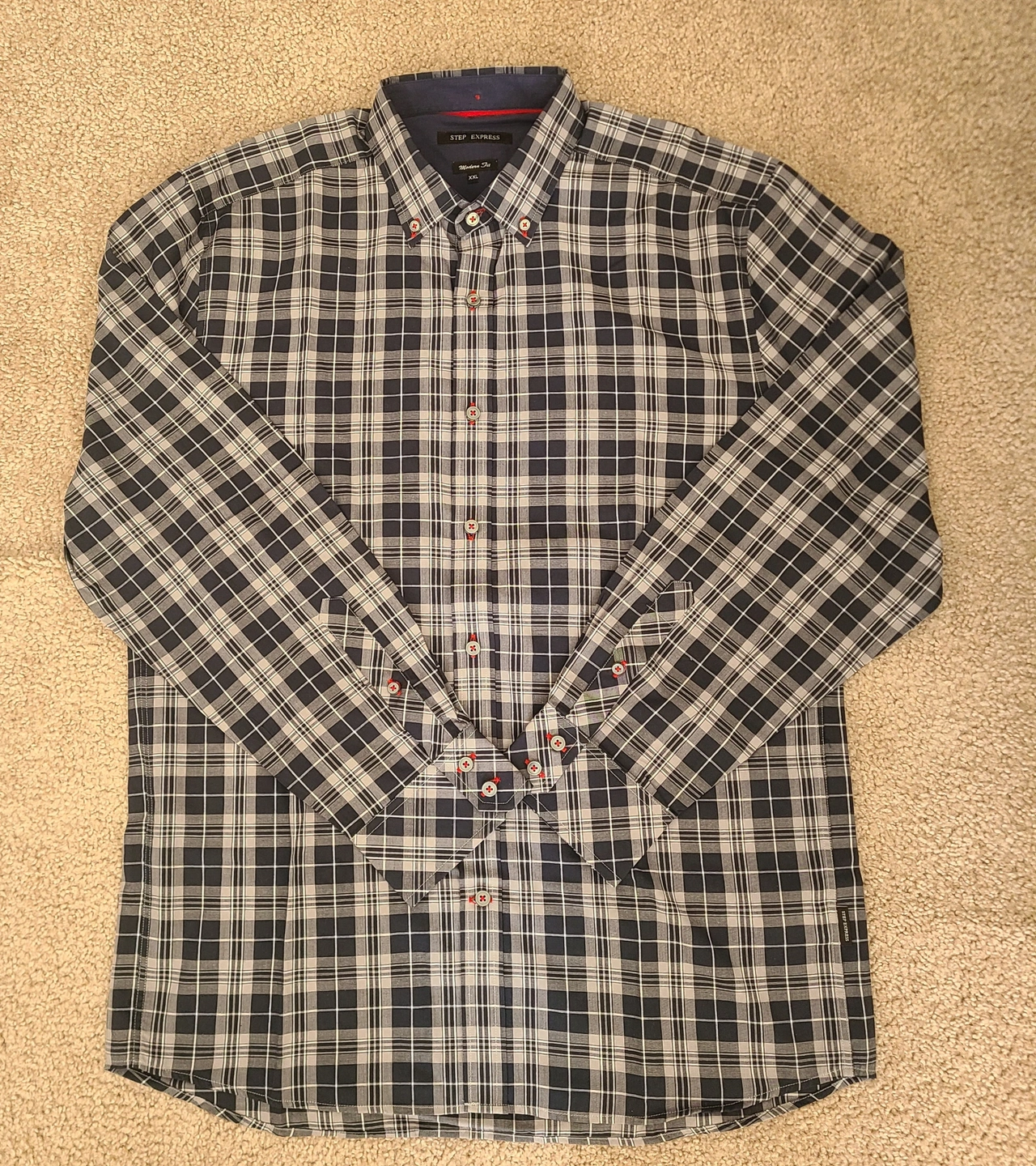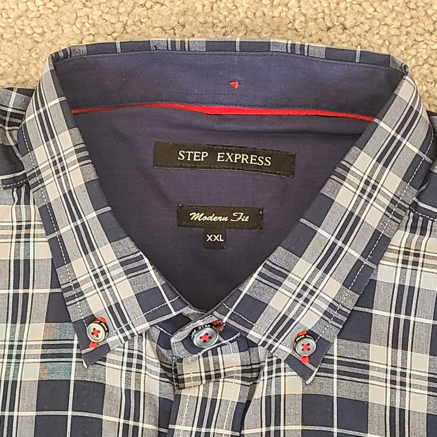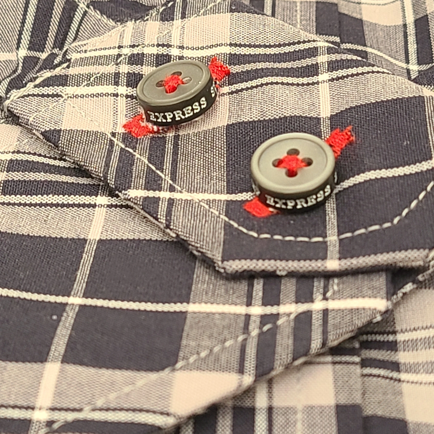 - Colour: Navy, grey, and white plaid