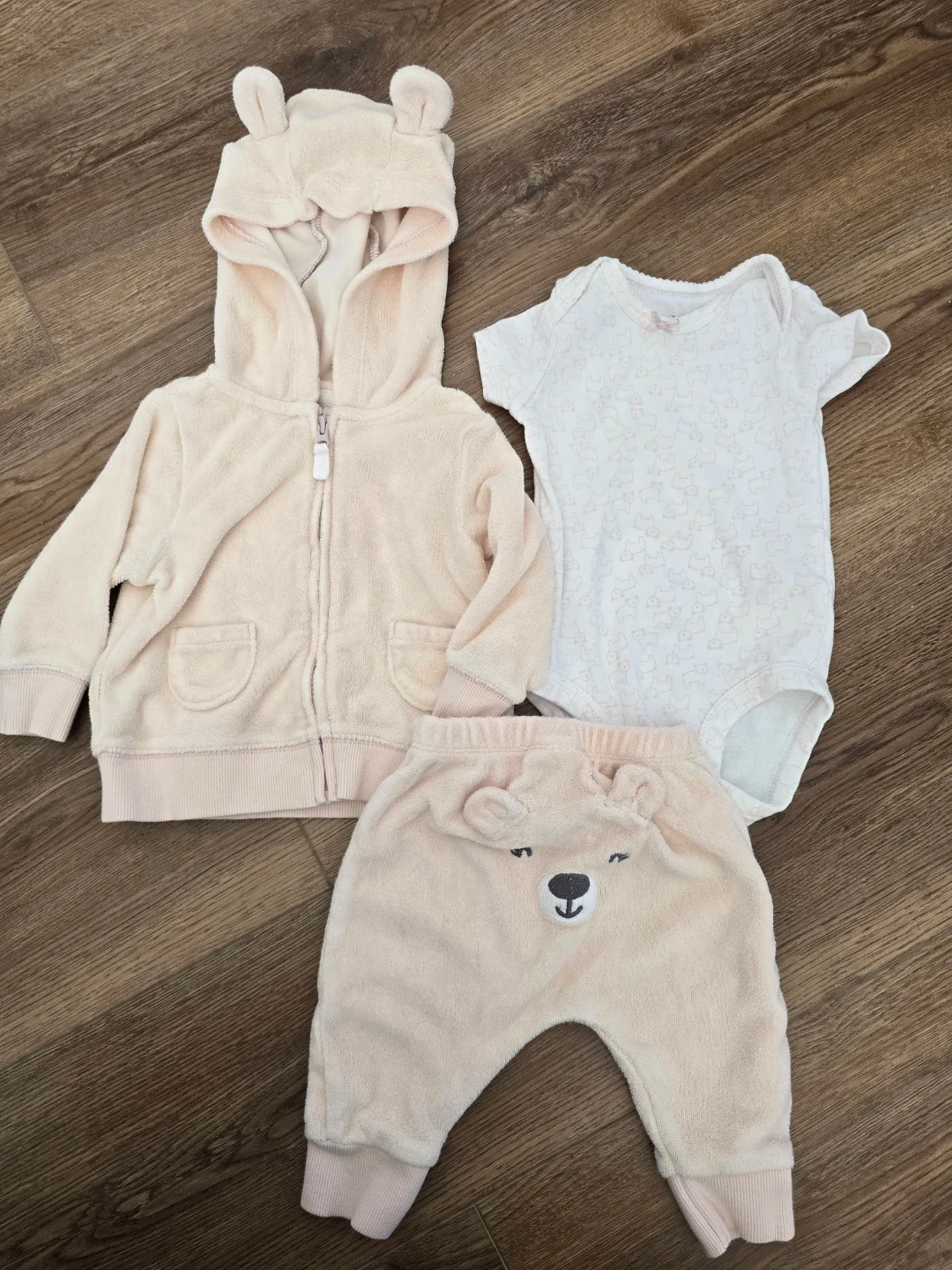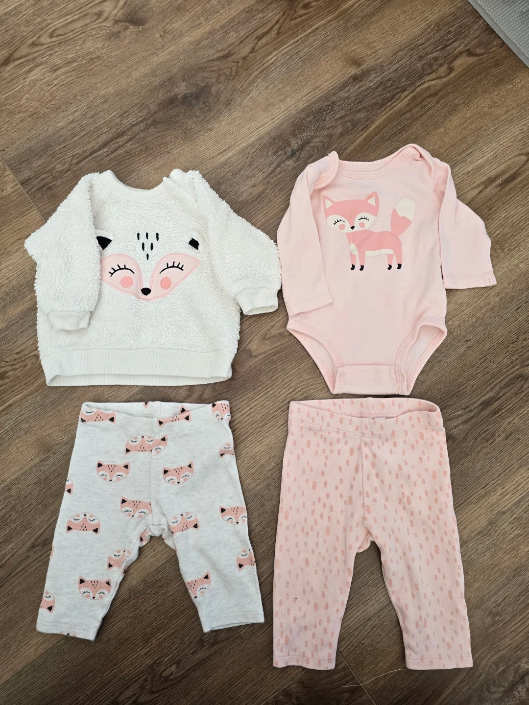 3 month old infant bundle in pinks! Complete outfits as well as cozy pajamas will take the guess work out of dressing your little one. Brands include Pekkle and Carter's.