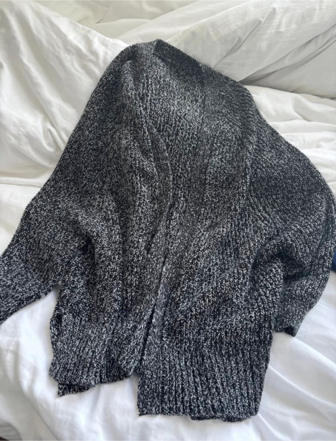 A cosy speckled knit cardigan in black and white. It's got a relaxed fit and ribbed cuffs and hem. This cardigan is perfect for layering over your favourite outfits during cooler weather.