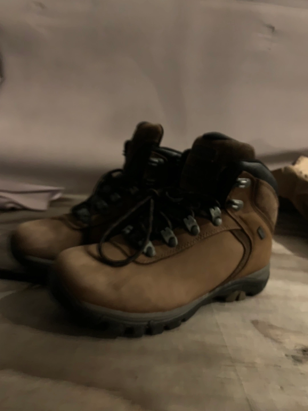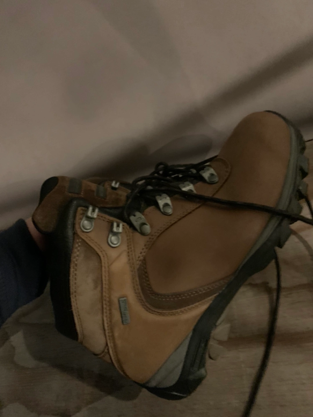 Waterproof leather hiking boots. Brown colour. In good condition.