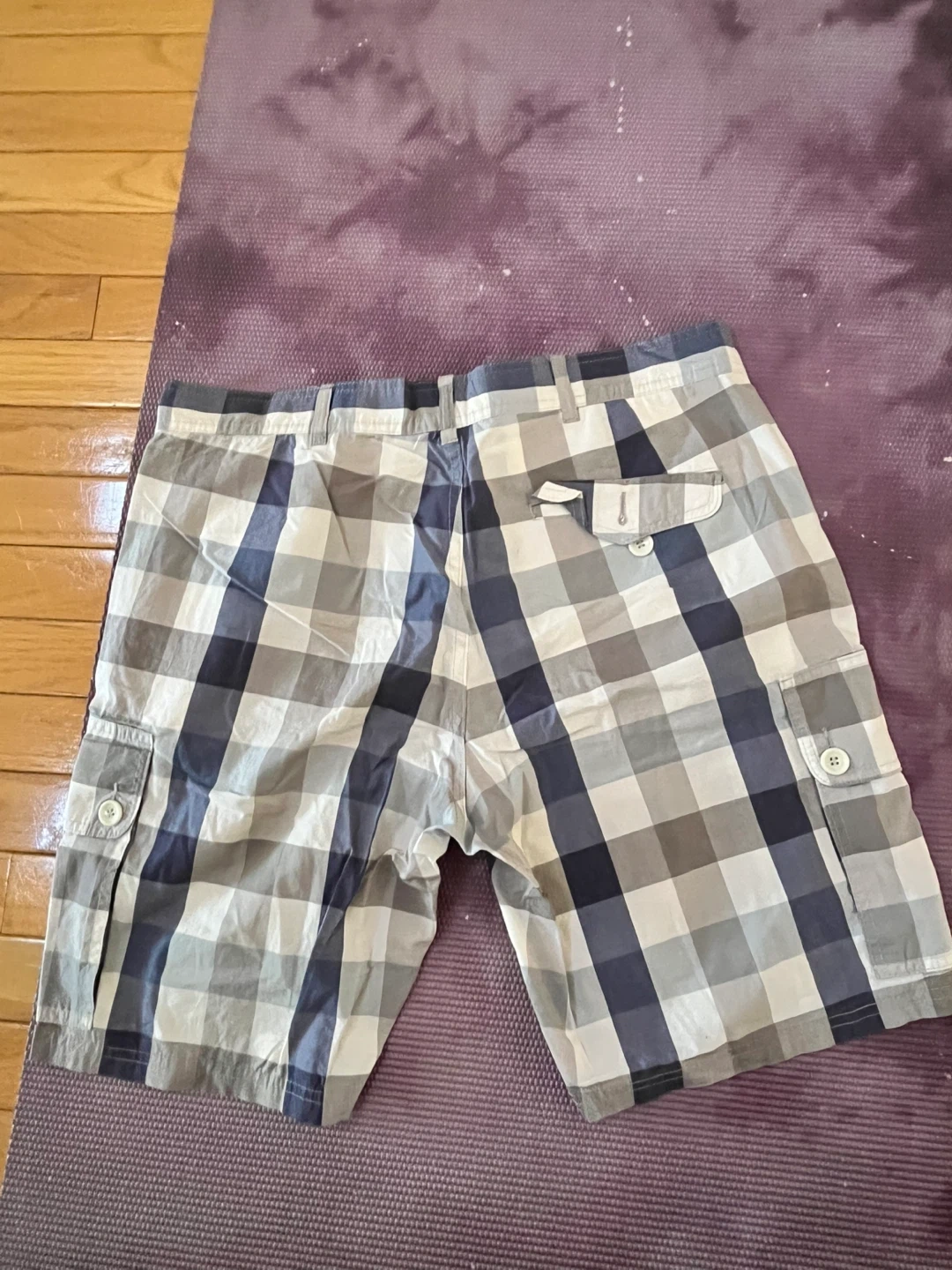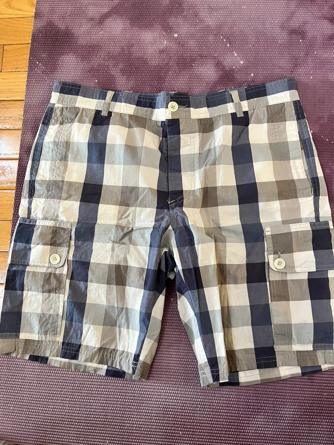 Comfortable Zara Man cargo shorts with a classic plaid pattern. Features multiple pockets for convenience. These shorts are size 34.