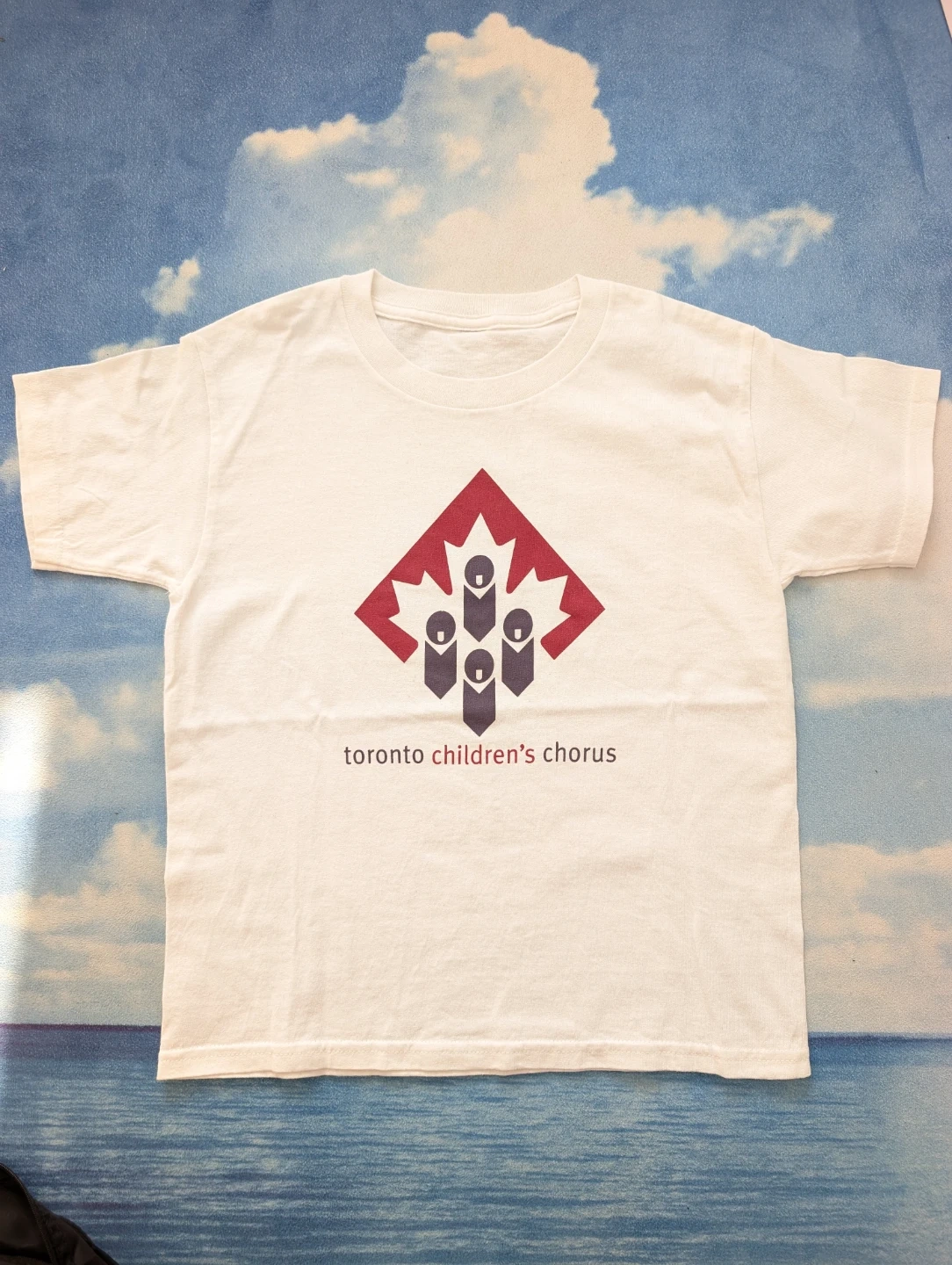 Gently used Toronto Children's Chorus White T-Shirt for 6-8 years old, shirt is made of a soft, breathable cotton material, needs to be put in use. Give away with any purchase.