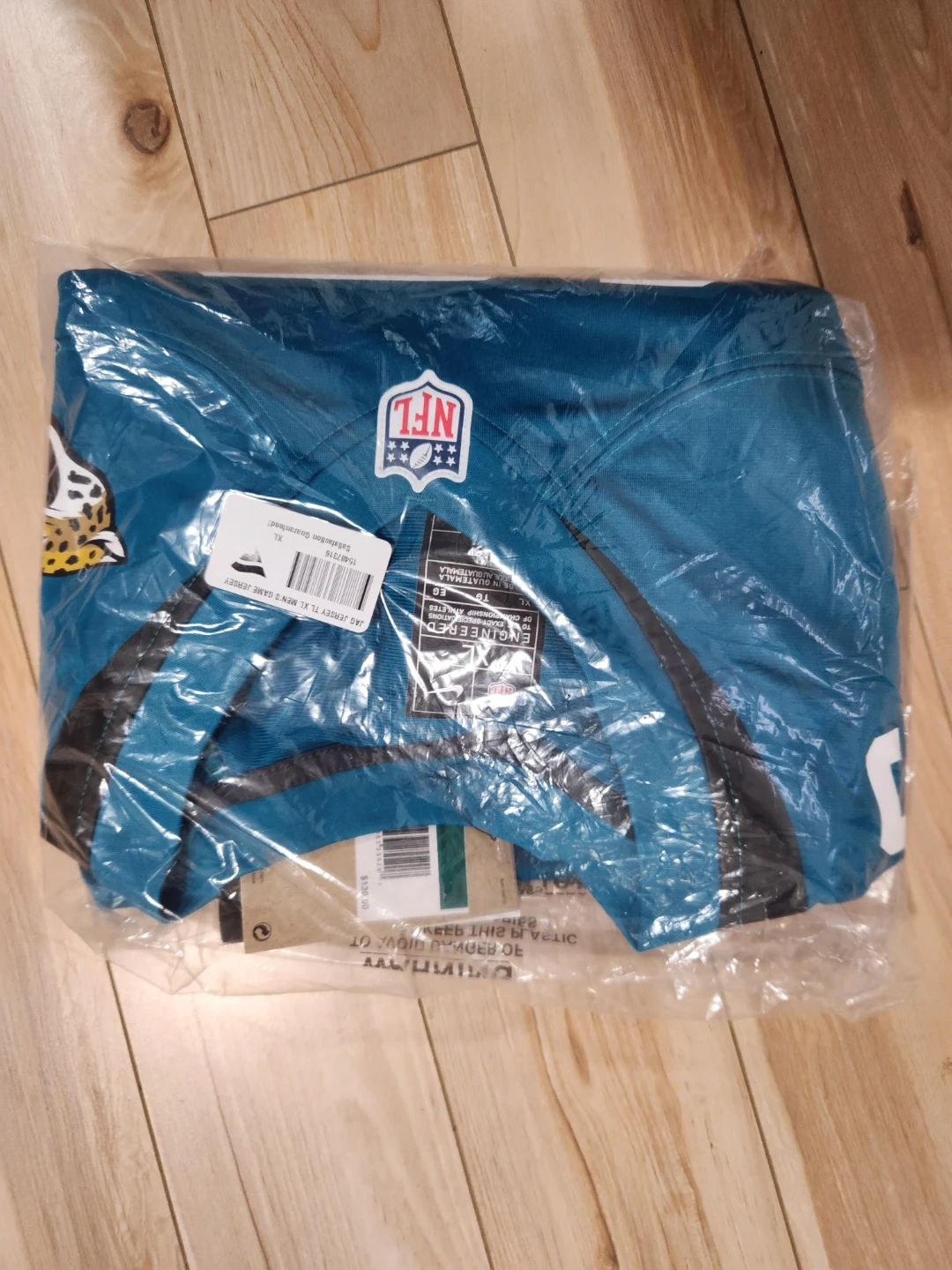 I'm selling a brand new Jacksonville Jaguars NFL jersey, still in its original packaging! This is a Lawrence #16 jersey, size XL. It is teal in colour and perfect for any Jaguars fan