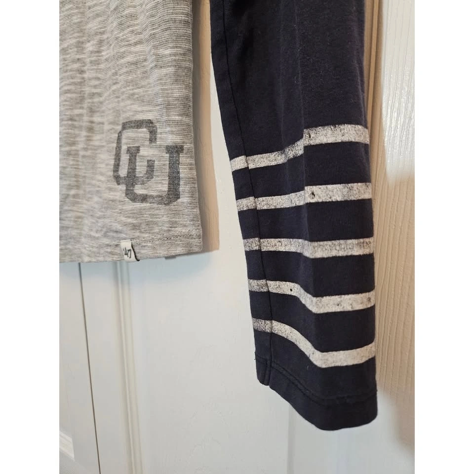 Vintage '47 Brand Columbia University collegiate colorblock long sleeve baseball tee in heather gray and navy blue. Women's size medium. Excellent, gently pre-loved condition with no stains, tears, or marks. Comes from a smoke-free and pet-free home.