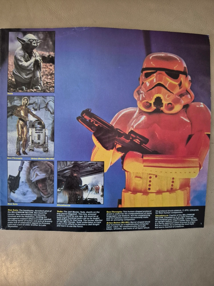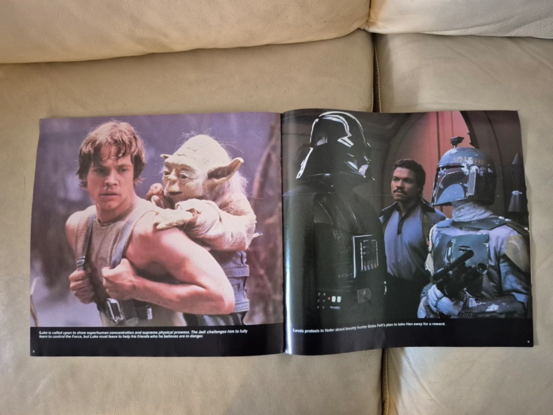 Vintage Star Wars: The Empire Strikes Back soundtrack booklet. Features photos and liner notes. Excellent collectible for fans.