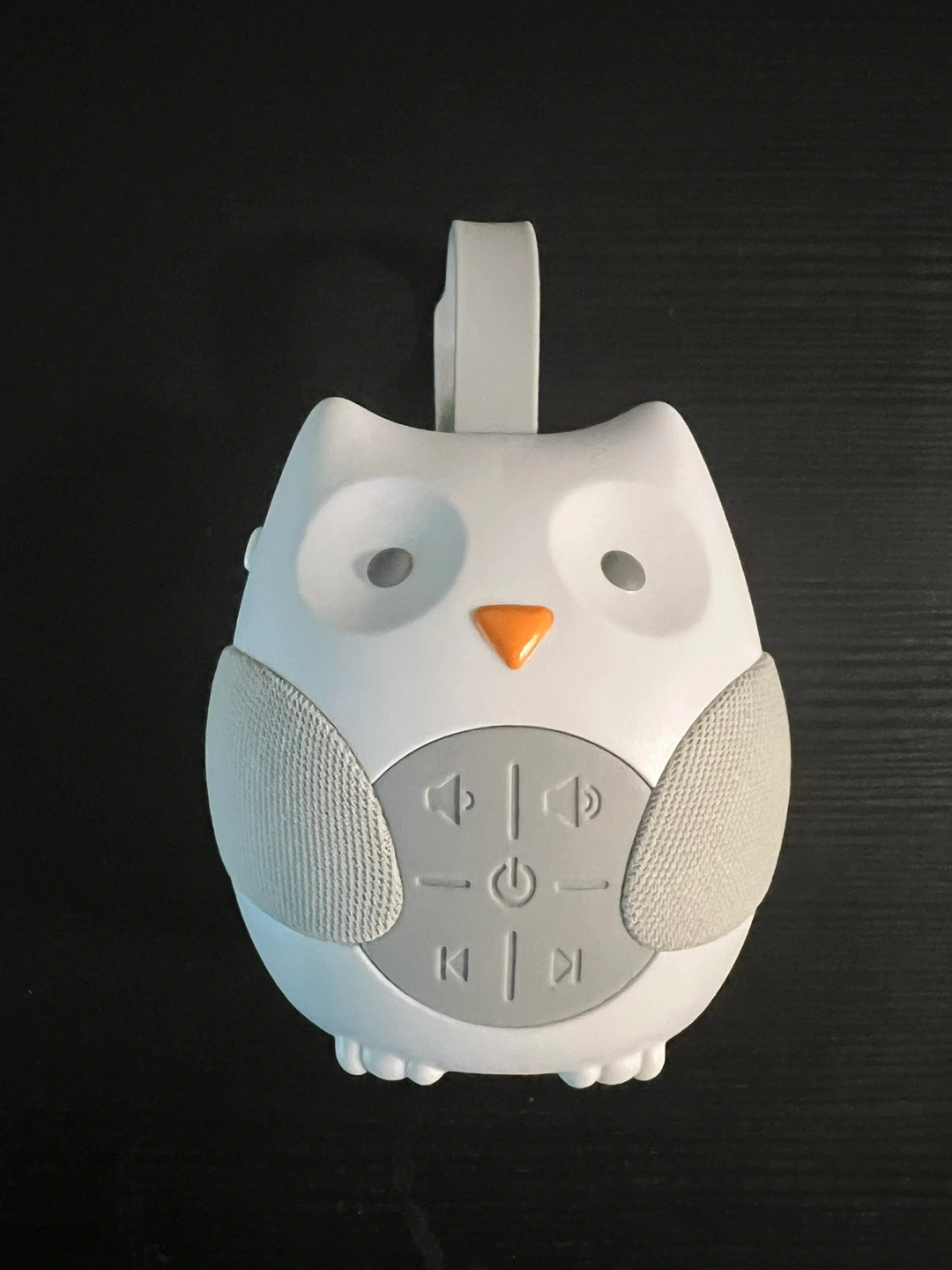 52Adorable owl-shaped sound machine. Plays soothing sounds. Features volume and track controls. Portable, convenient design. Perfect for babies and children.