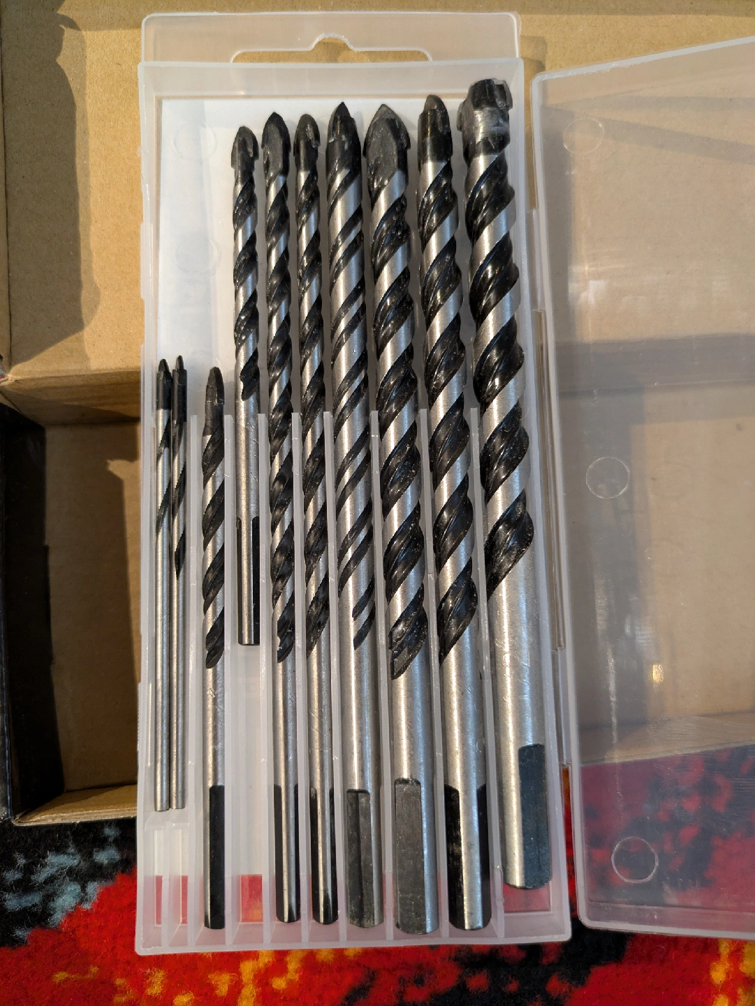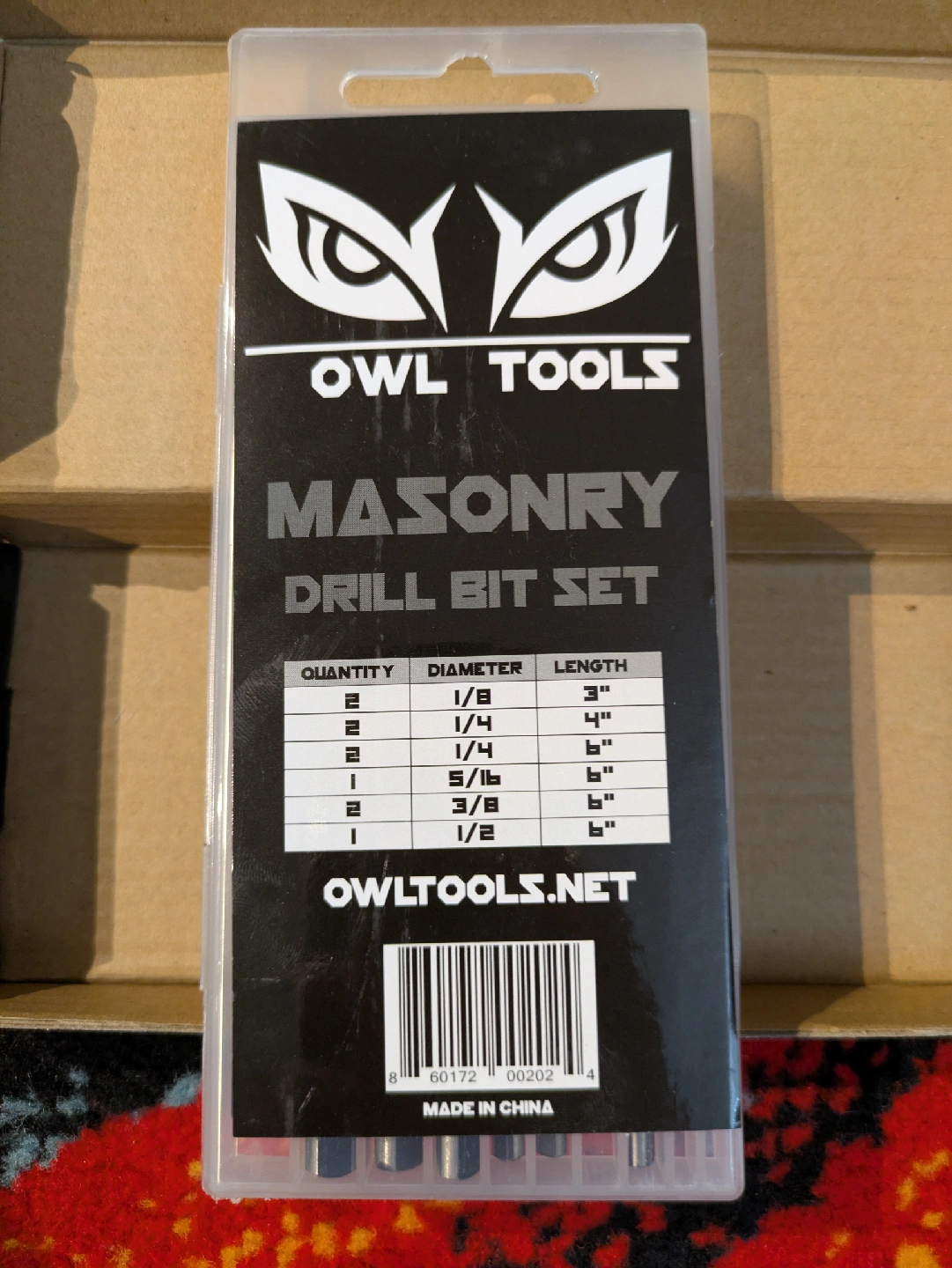 64Selling a brand new OWL TOOLS masonry drill bit set! It comes in its original box and includes a variety of sizes: - 2 x 1/8" diameter, 3" length - 2 x 1/4" diameter, 4" length - 2 x 1/4" diameter, 6" length - 1 x 5/16" diameter, 6" length - 2 x 3/8" diameter, 6" length - 1 x 1/2" diameter, 6" length Perfect for all your masonry drilling needs Pick-up location: 9733 111 St. (Downtown - Oliver Area)