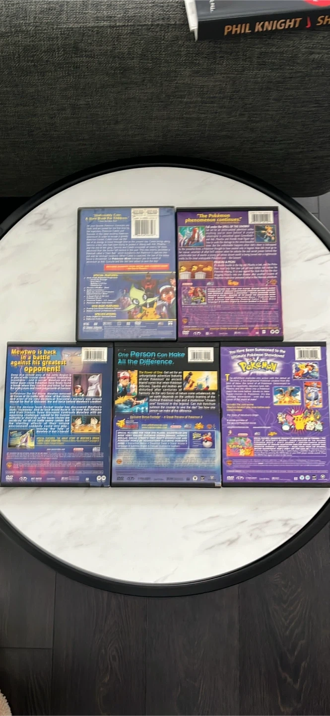 This is a collection of five Pokémon The Movie DVDs. Includes "Mewtwo Returns," "The Movie 3," "4Ever," "2000," and "The First Movie: Mewtwo Strikes Back." Great for any Pokémon fan!