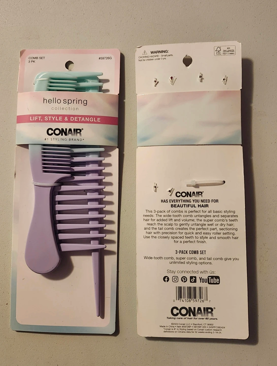 Conair Hello Spring Comb Set 3 Pack