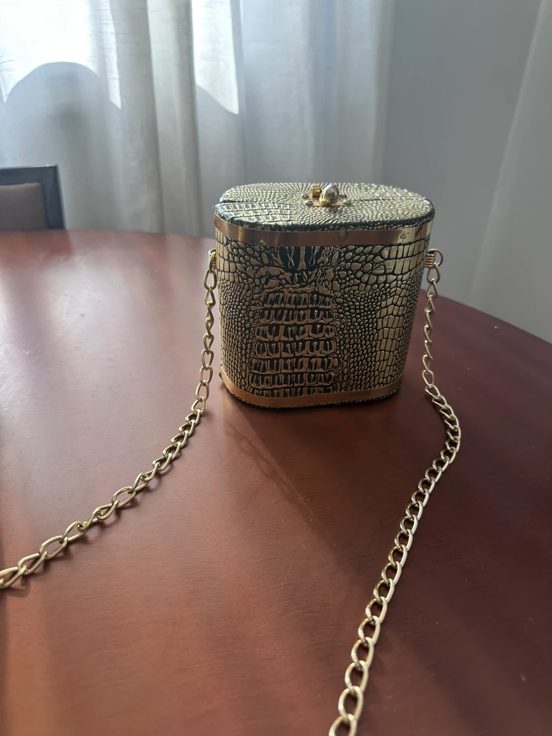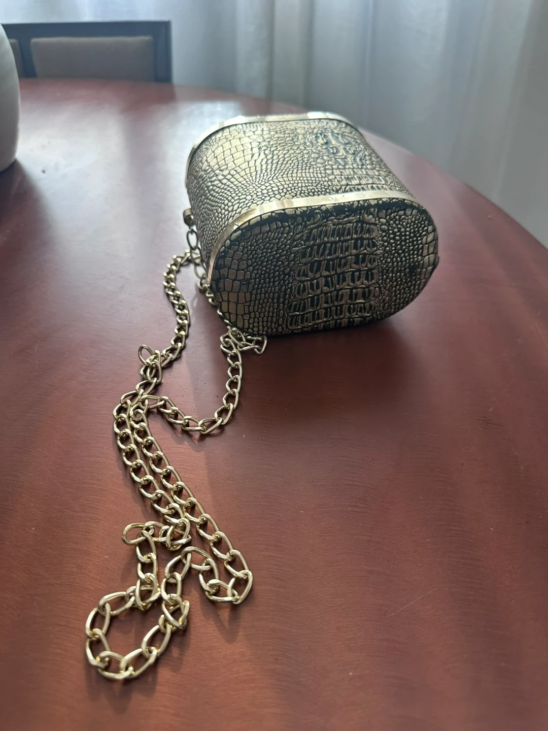 Vintage Gold Crocodile Pattern Purse with Gold Chain