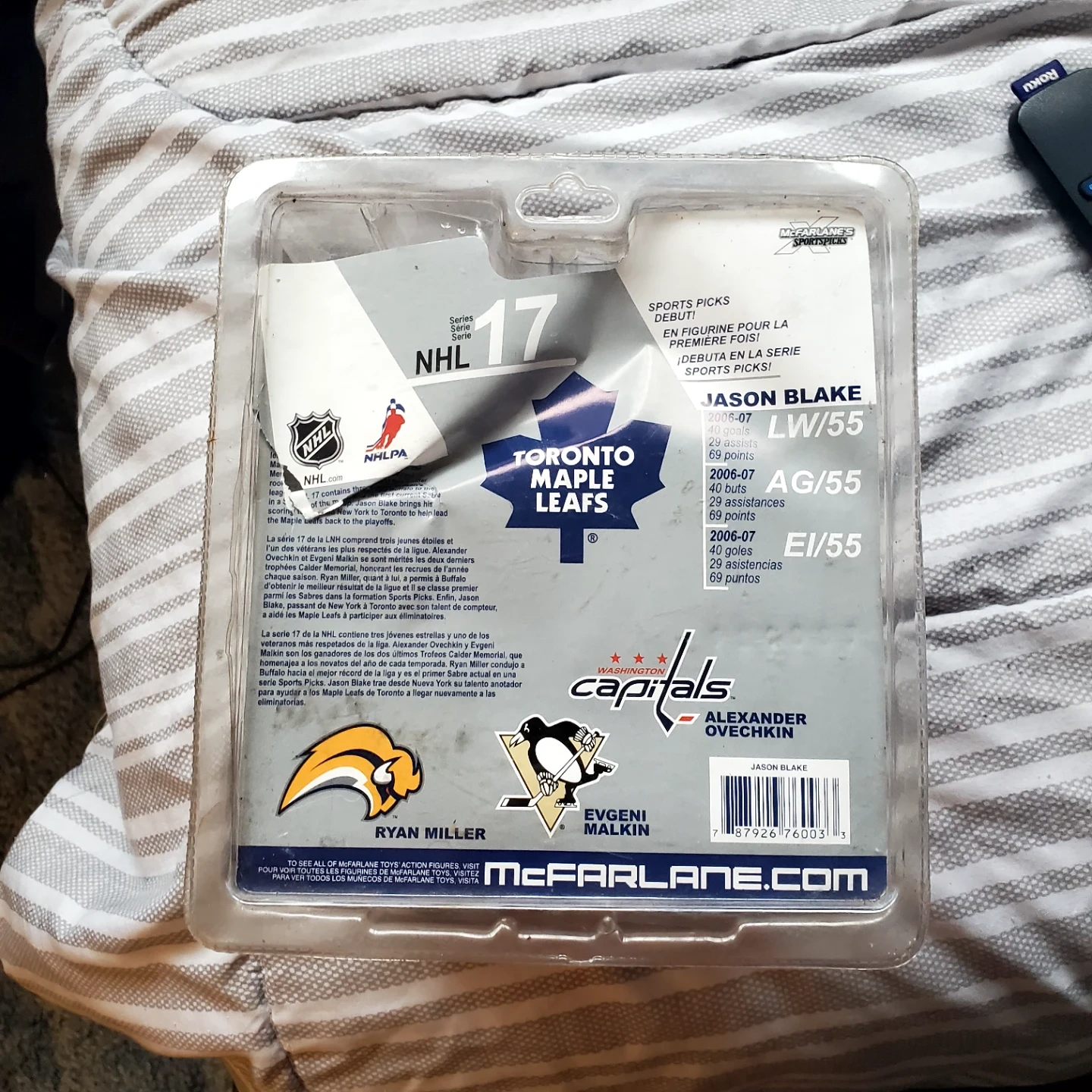 This is a McFarlane Toys Toronto Maple Leafs action figure featuring Jason Blake. It's from the 2006-07 series. The figure comes in its original packaging.