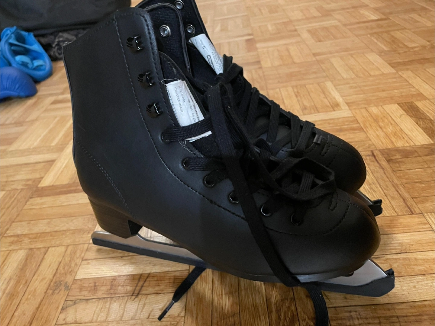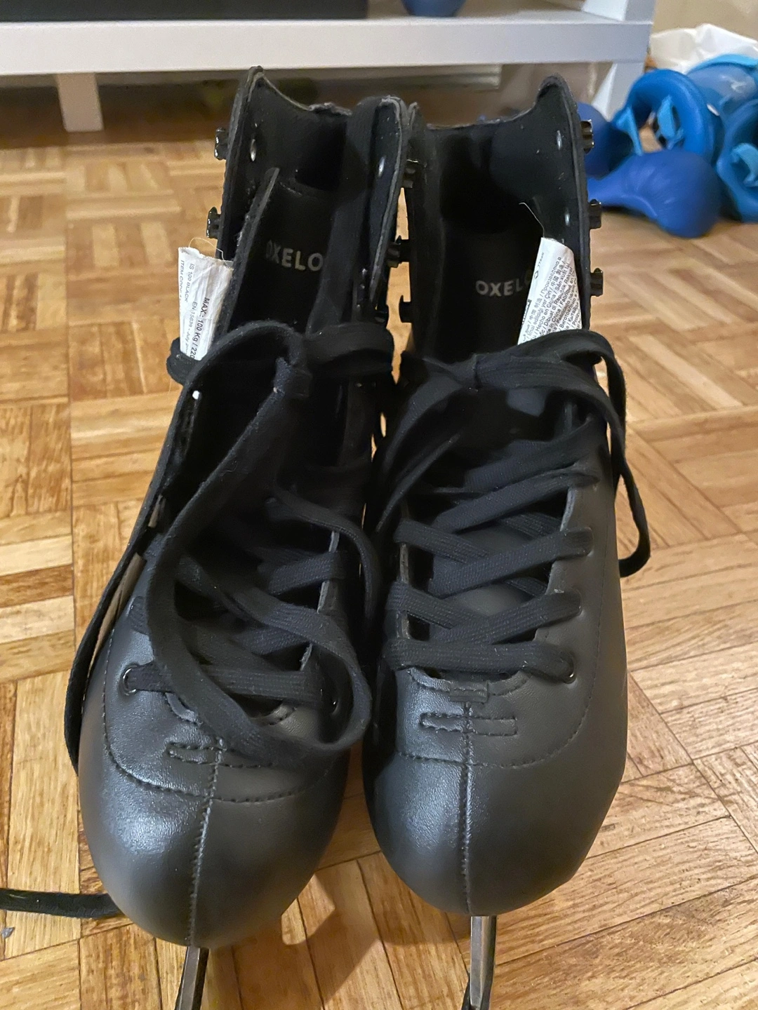 Selling a pair of Oxelo figure skates in black. They're in great shape and ready for the ice. Perfect for beginners or anyone looking for a reliable pair of skates! Moving sale