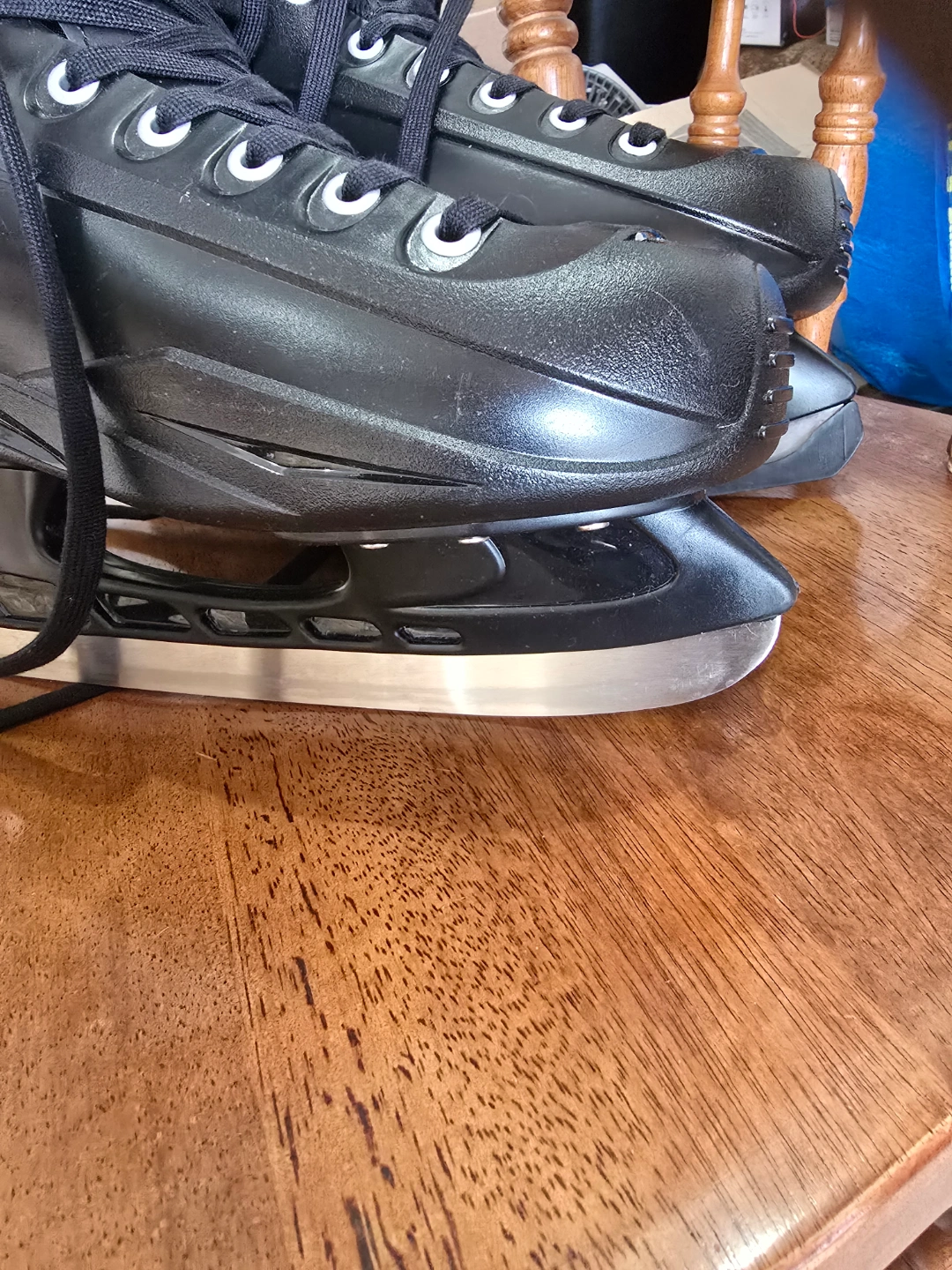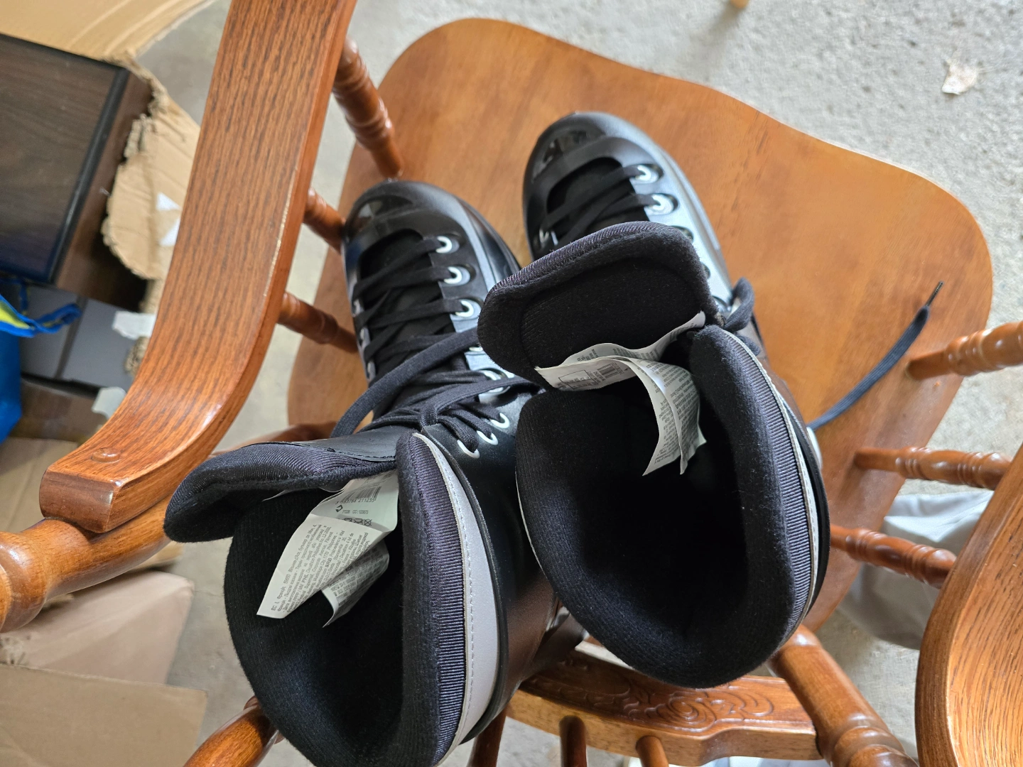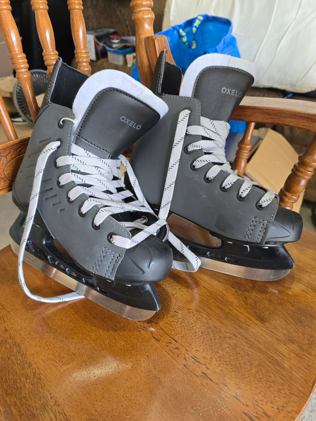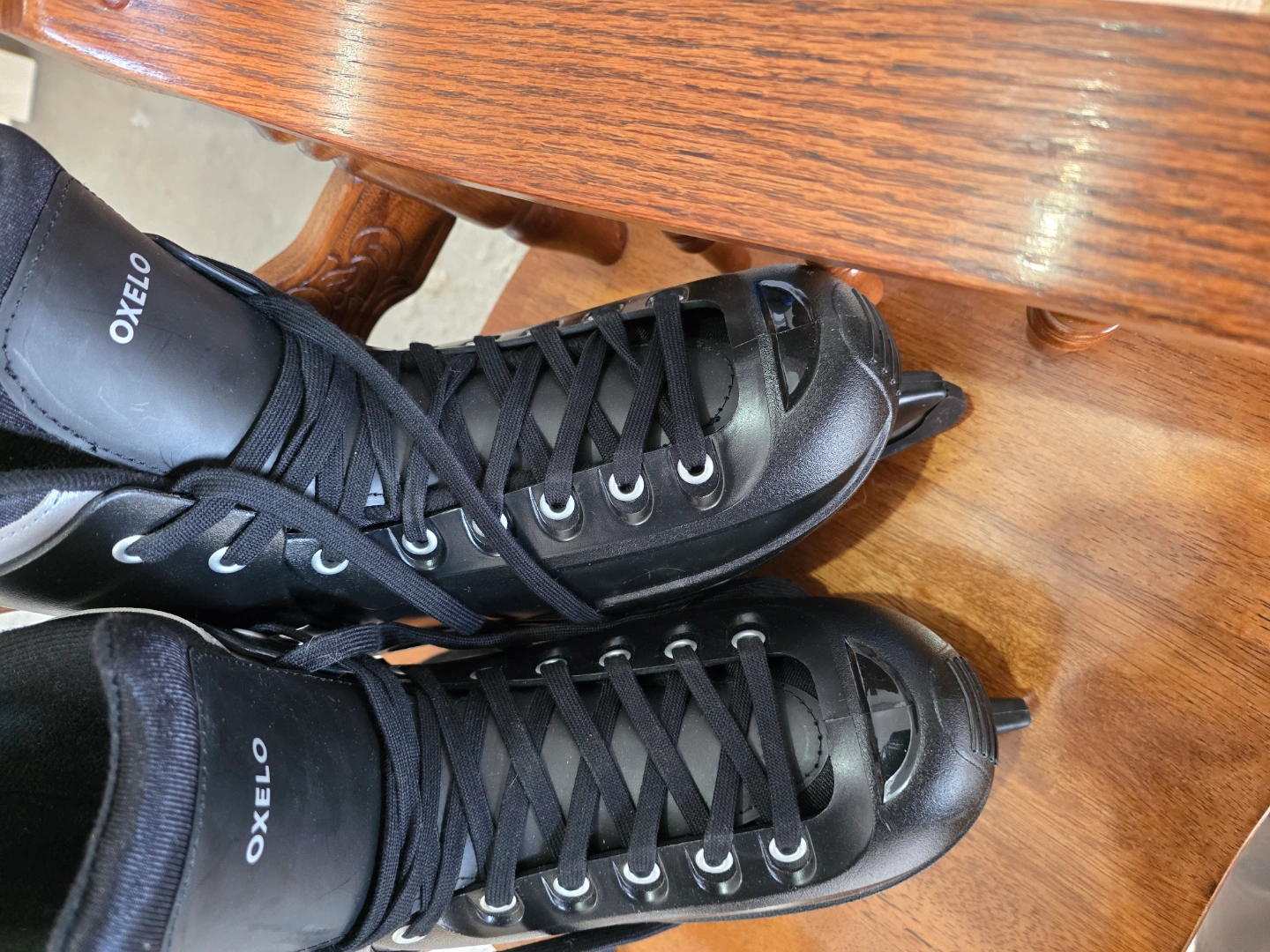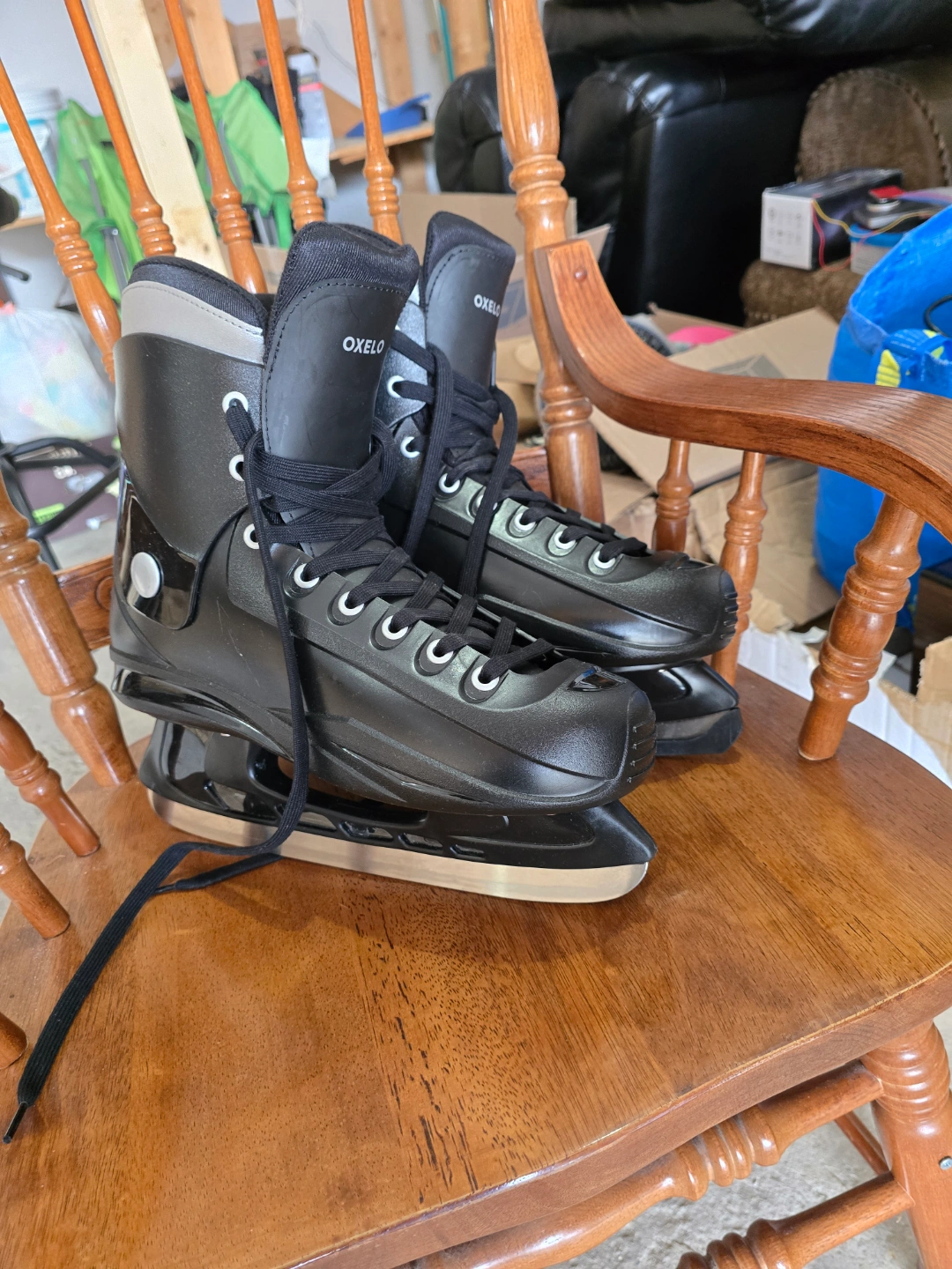 460Pair of used Oxelo ice skates. Black with grey accents. Lace-up closure. Good condition. Suitable for recreational use. good for the beginner. each $30 both for $50