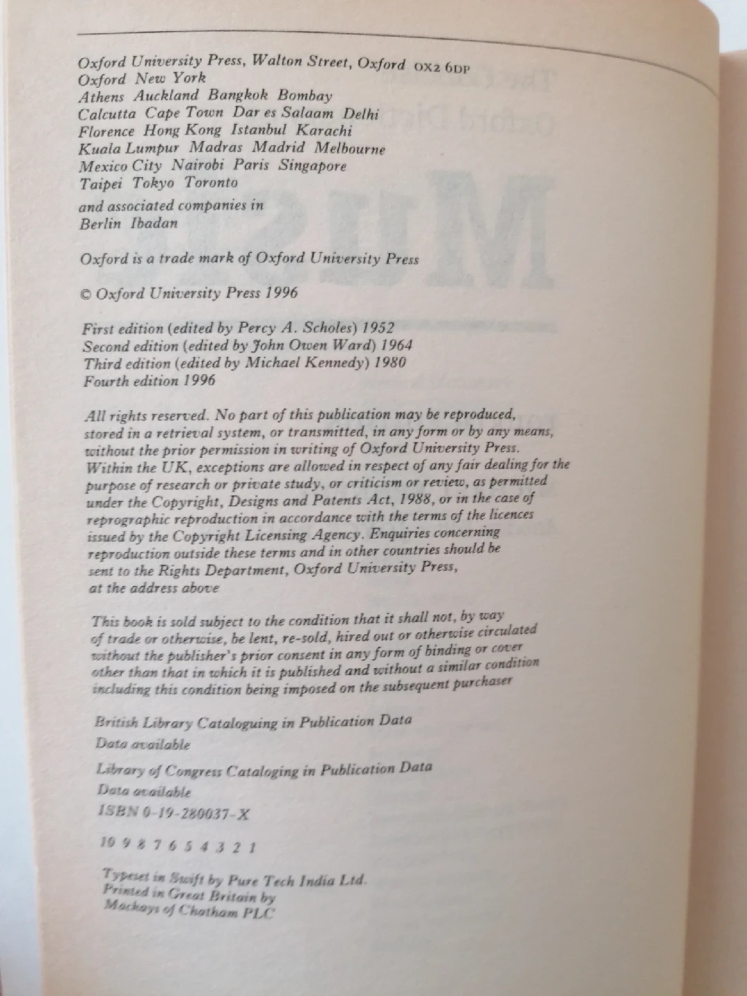 Selling a copy of the softbound Oxford Concise Dictionary of Music by Michael Kennedy. It's the fourth edition from 1996. Perfect for music lovers of all periods and styles! It includes 14,000 entries on musical terms, works, composers, and more. Book is in excellent shape, no creases, no bending, or any kind of damage. Only yellowing of the pages from age. Pickup available from Etobicoke or Richmond Hill.