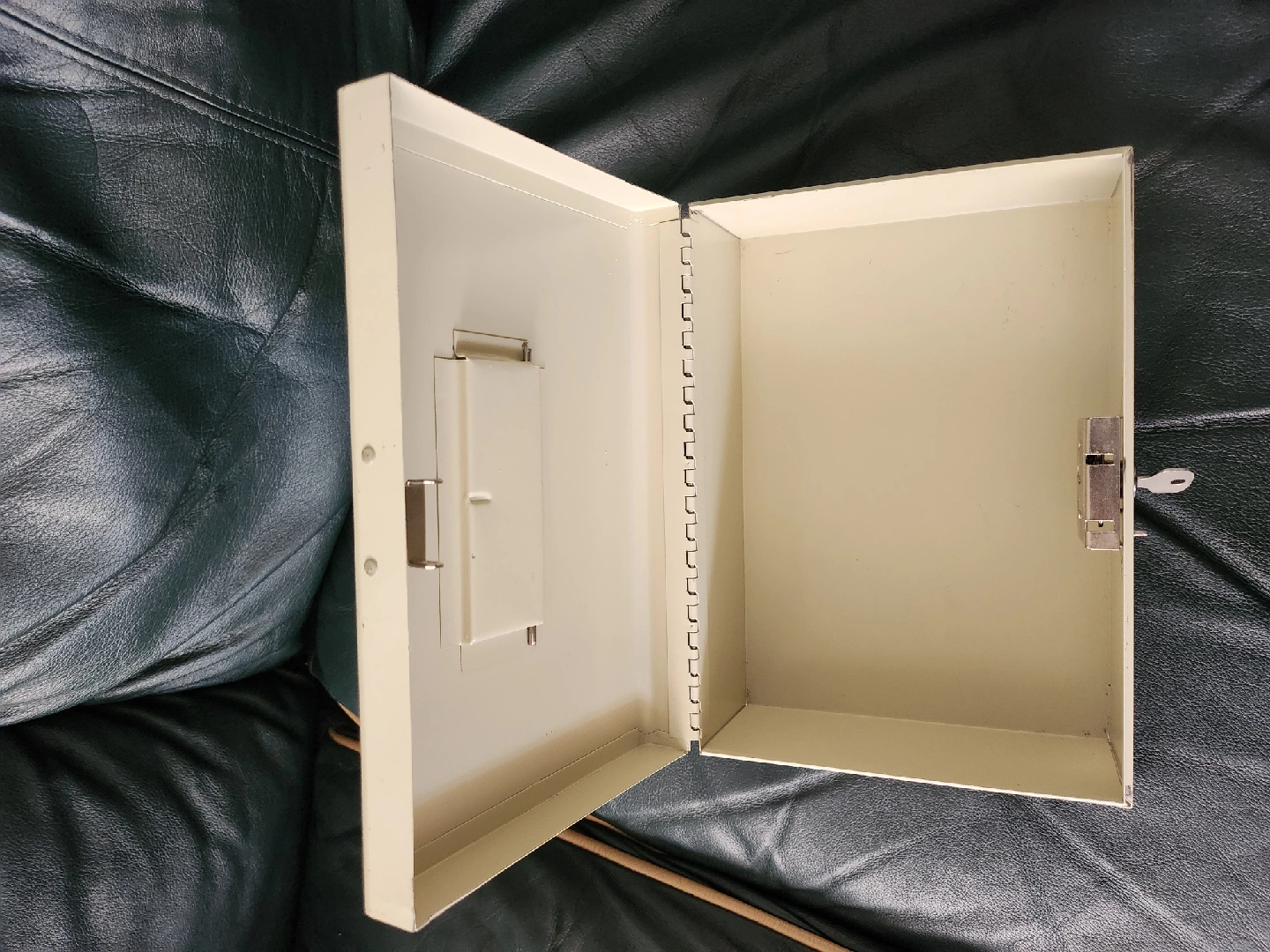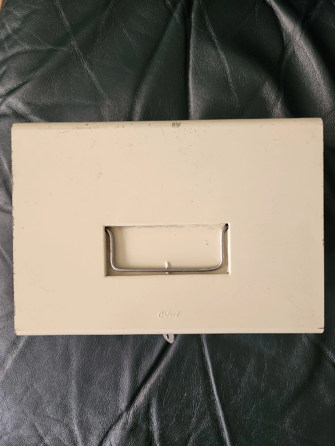 Selling a used Oxford metal cash box. It comes with a key to keep your valuables safe. Shows some signs of wear and scratches, but it's still functional and ready for a new home! pick up only. cash only. price is firm.