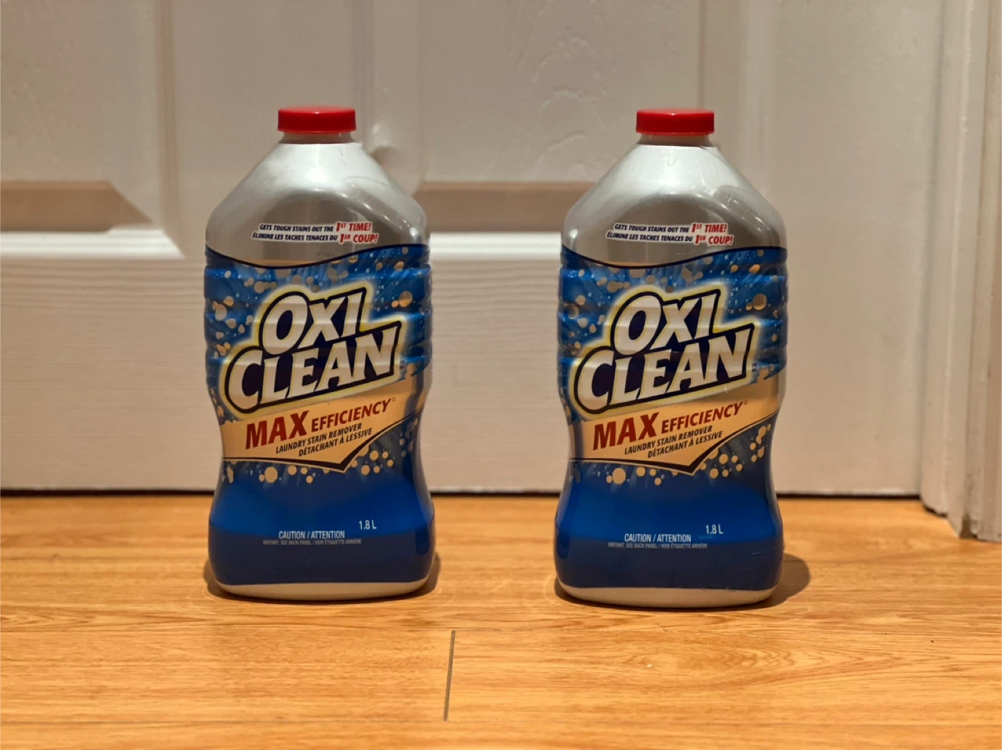 60Selling two bottles of OxiClean Max Efficiency Laundry Stain Remover. Each bottle contains 1.8 L of stain remover. Gets tough stains out the first time! Perfect for keeping your clothes looking their best. MSRP $23.99. 2 for $36 or 1 for $20