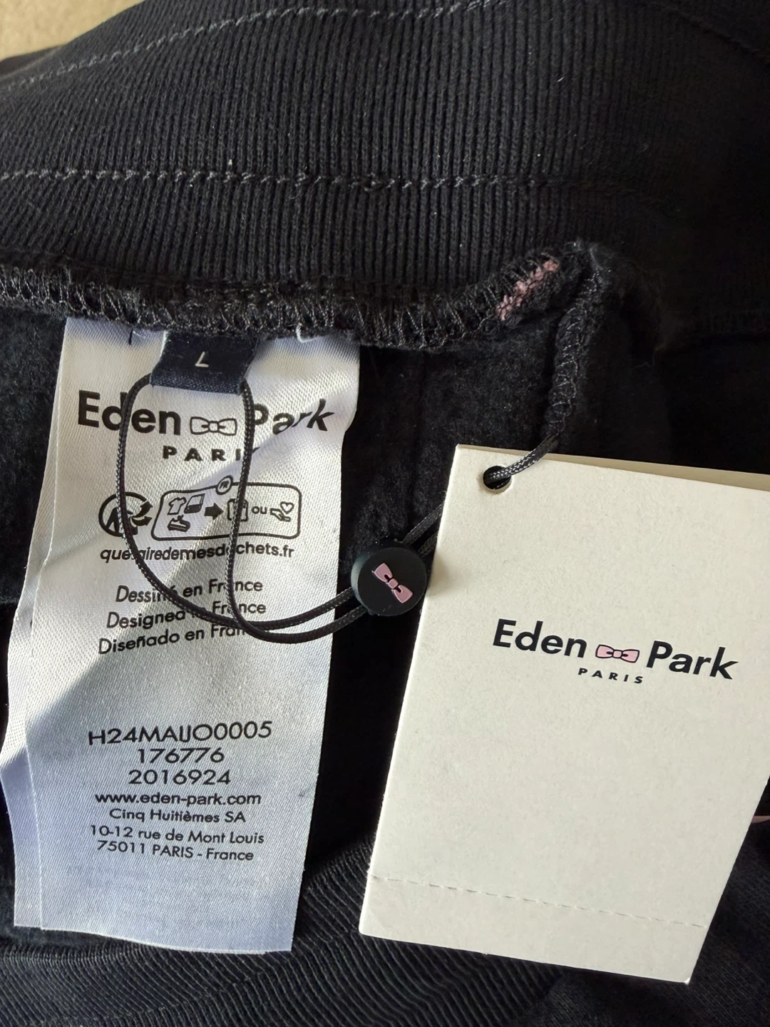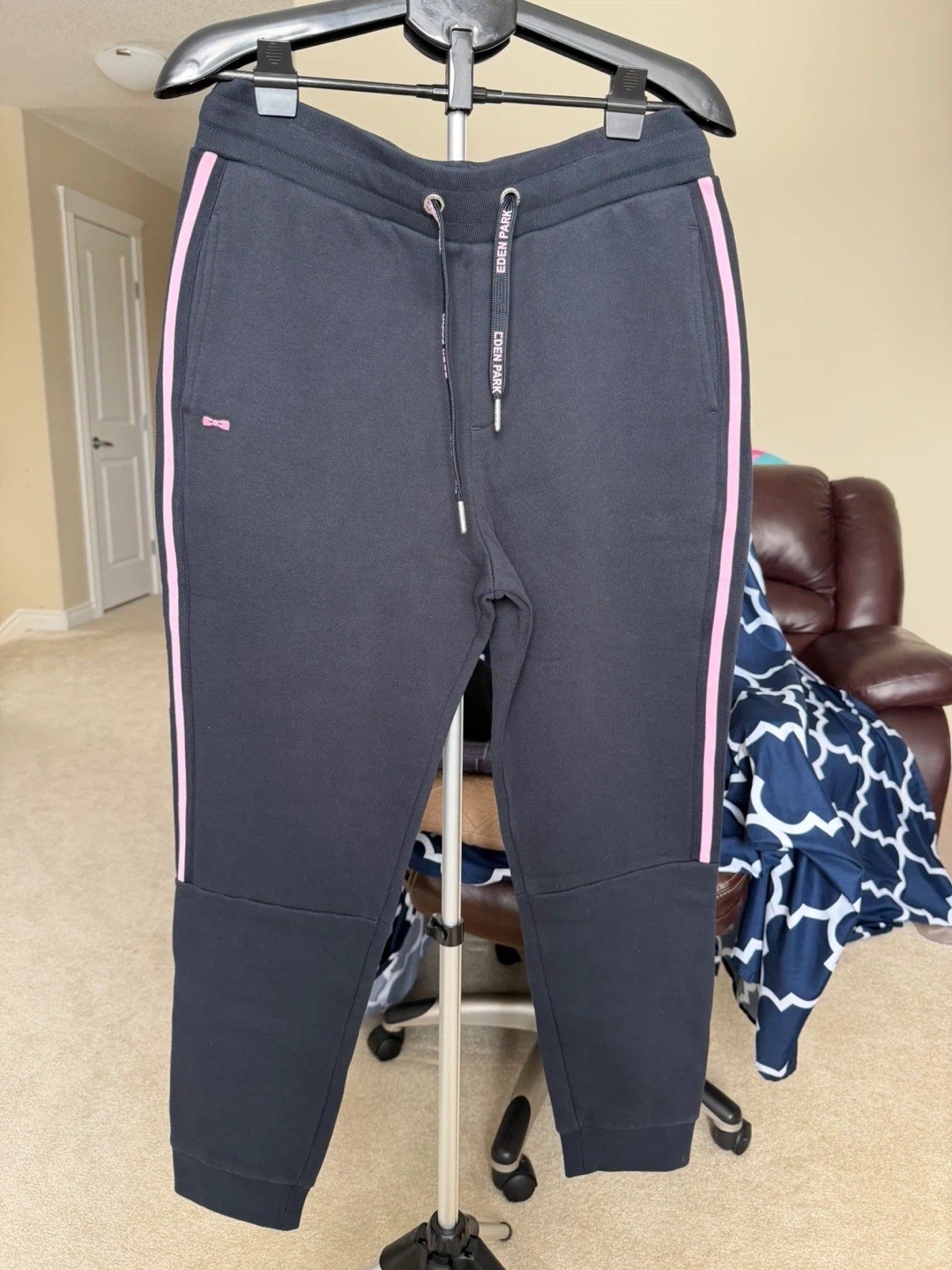 These Eden Park Paris joggers are black with a pink stripe detail down the sides. They're size large. Comfortable for casual wear! Brand new with tags.Unisex.